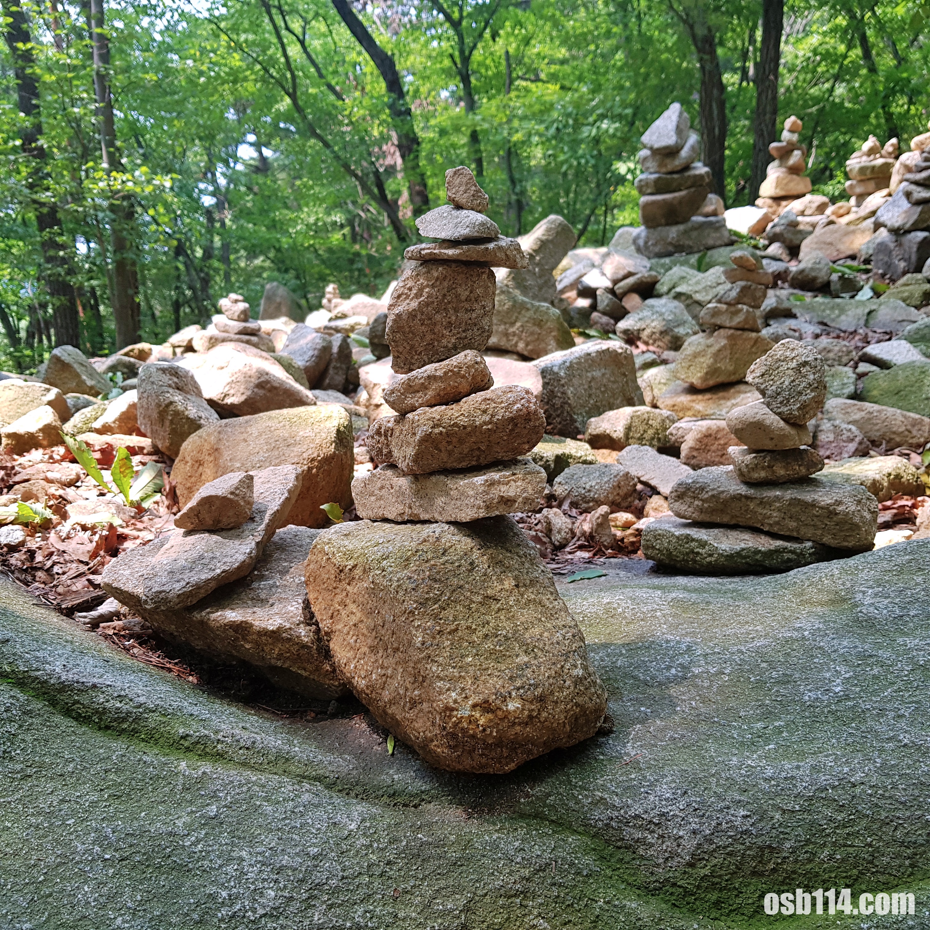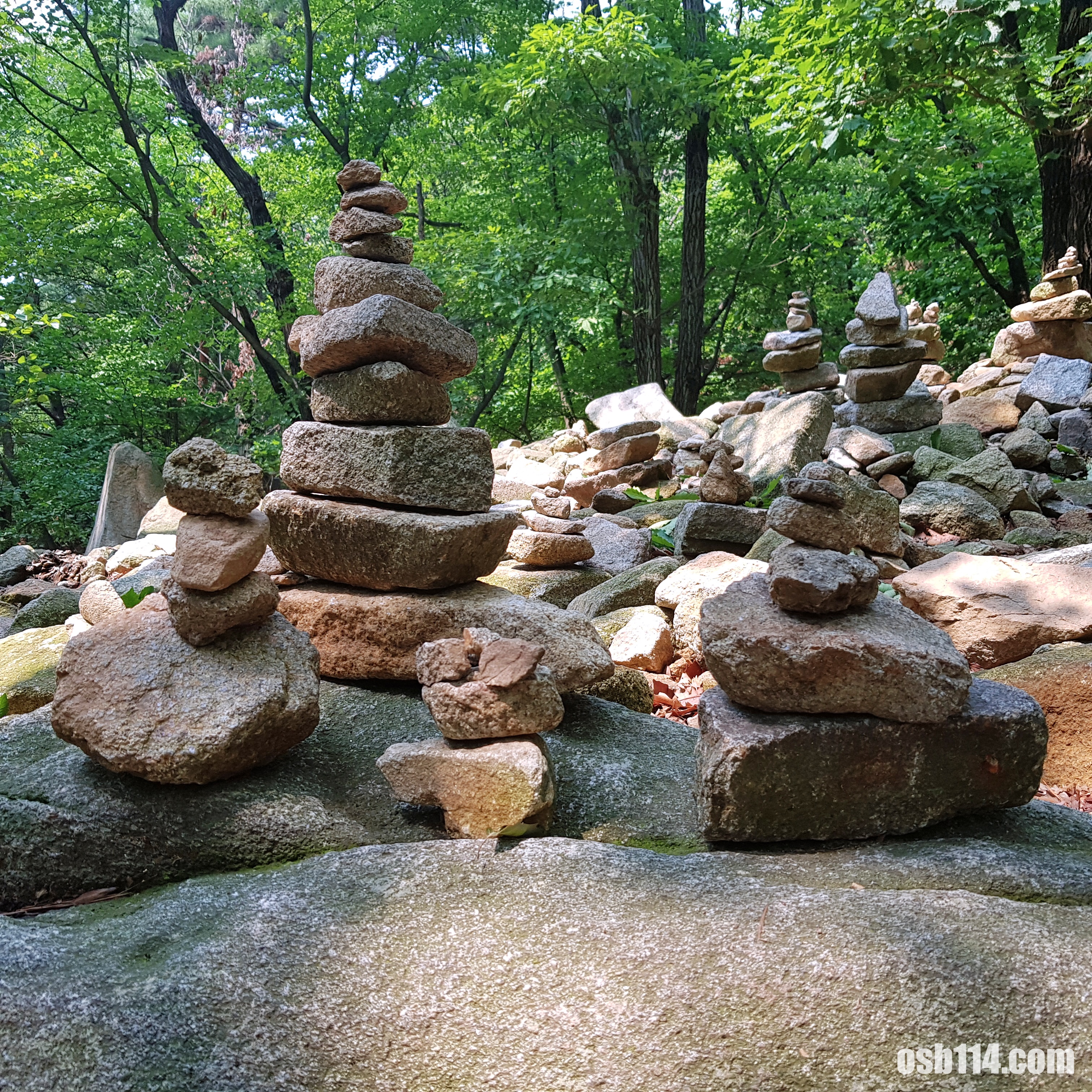 하산 중에 돌탑들이 보였습니다.