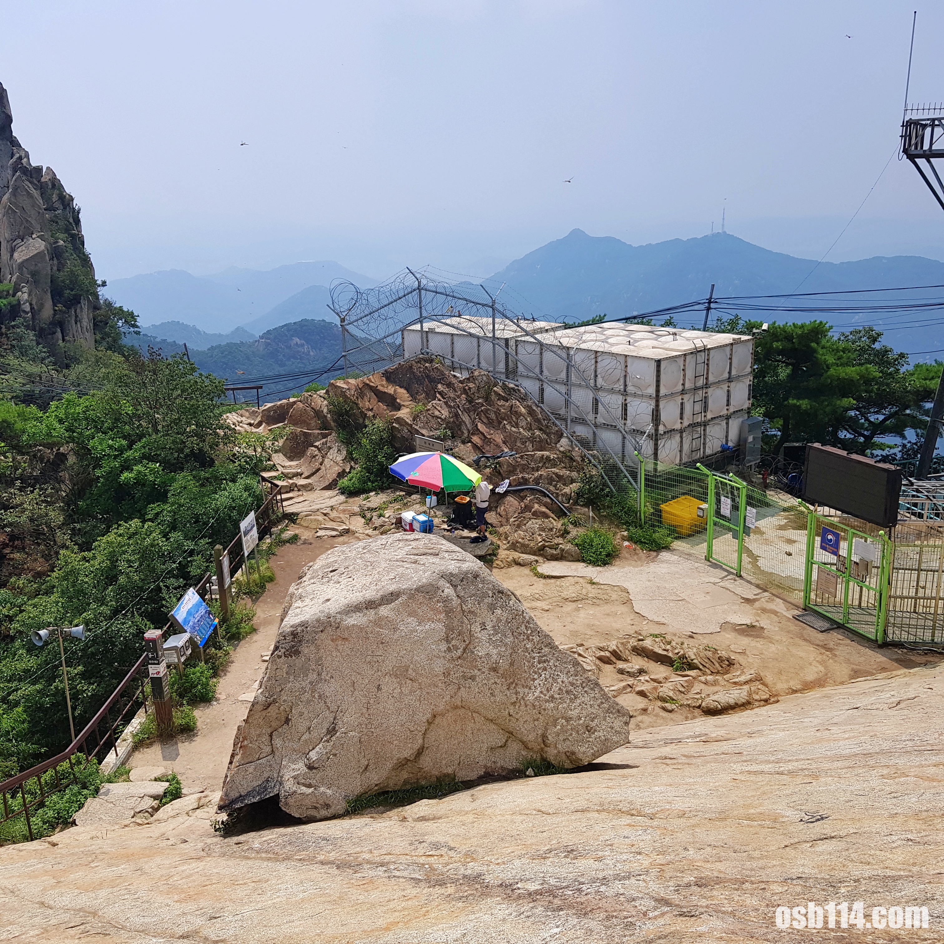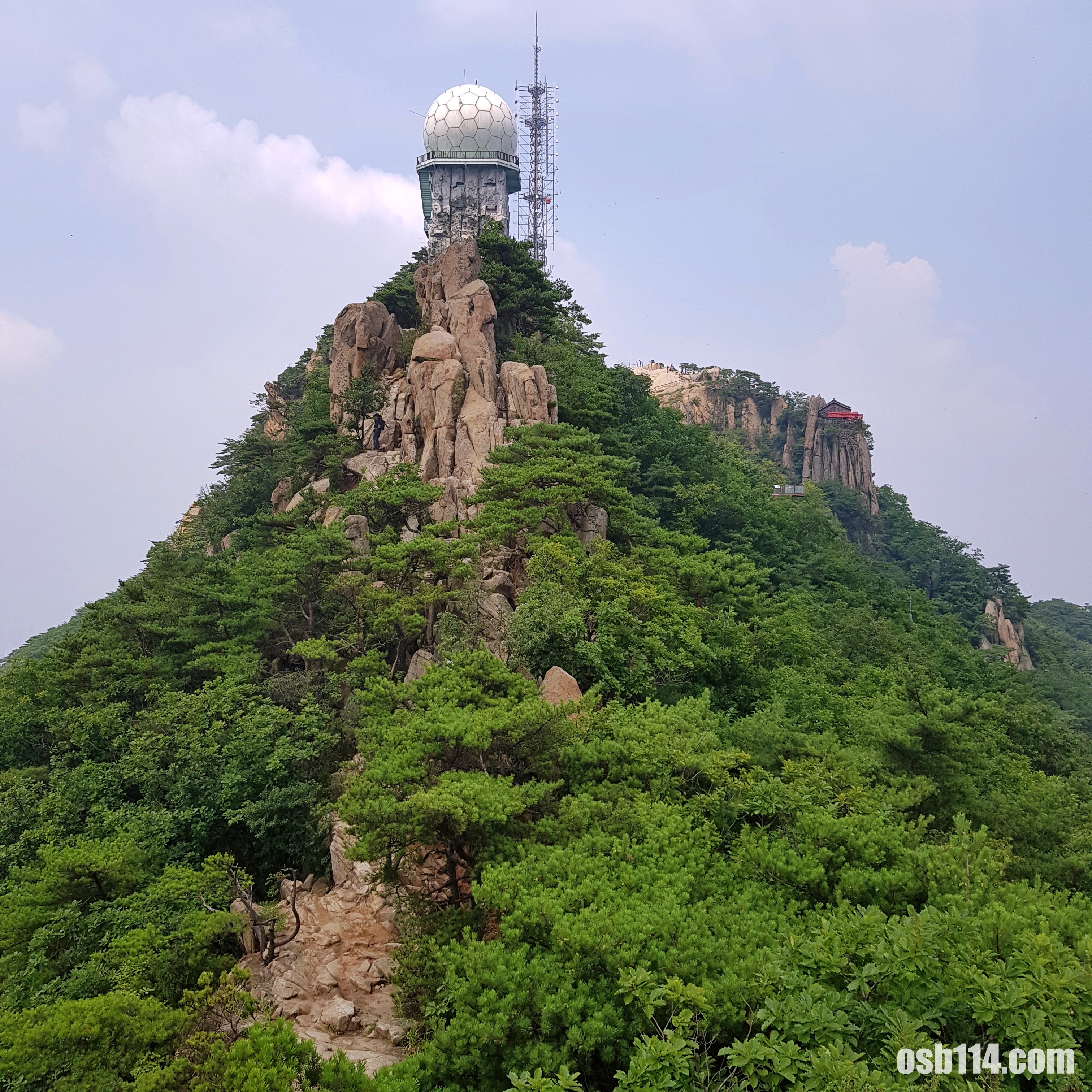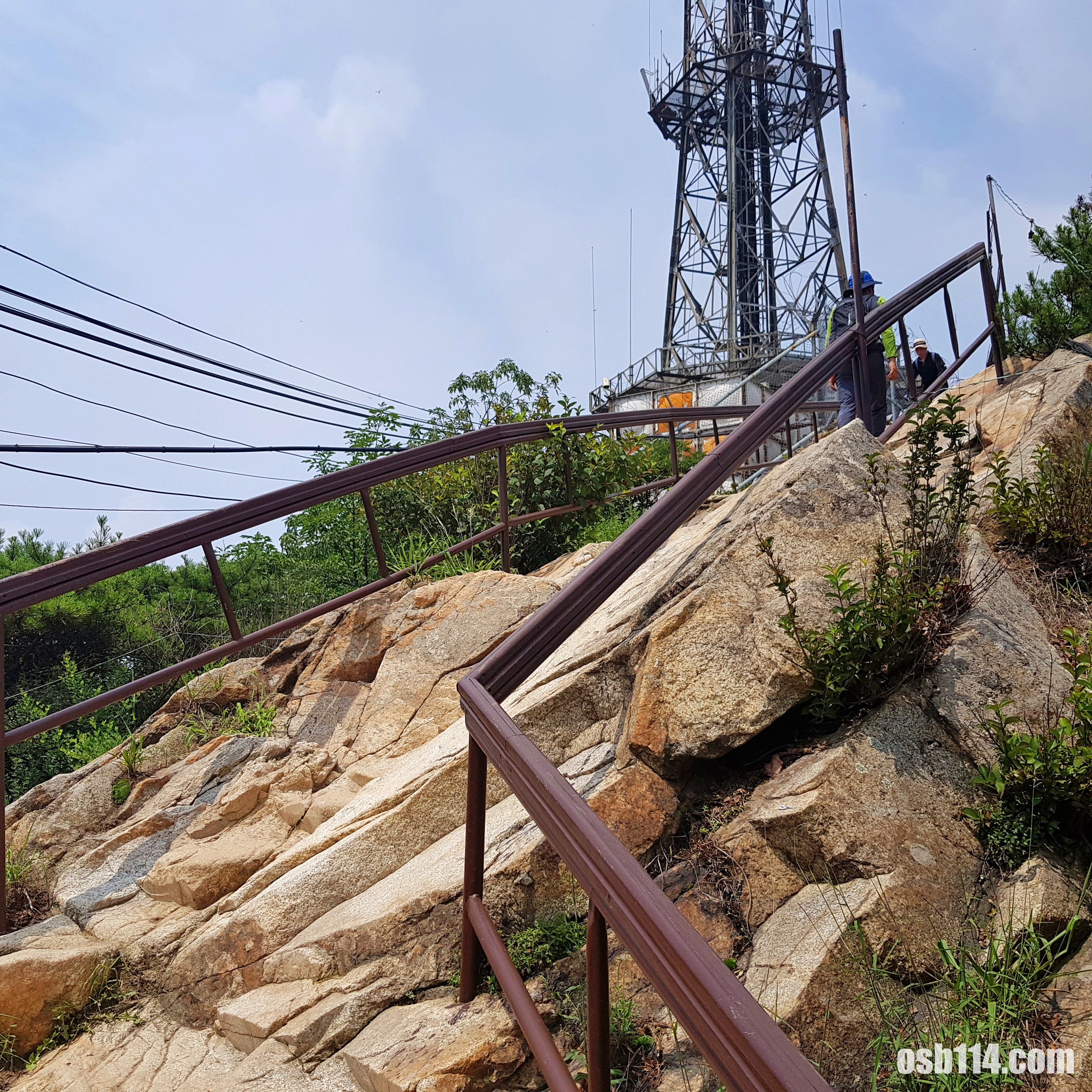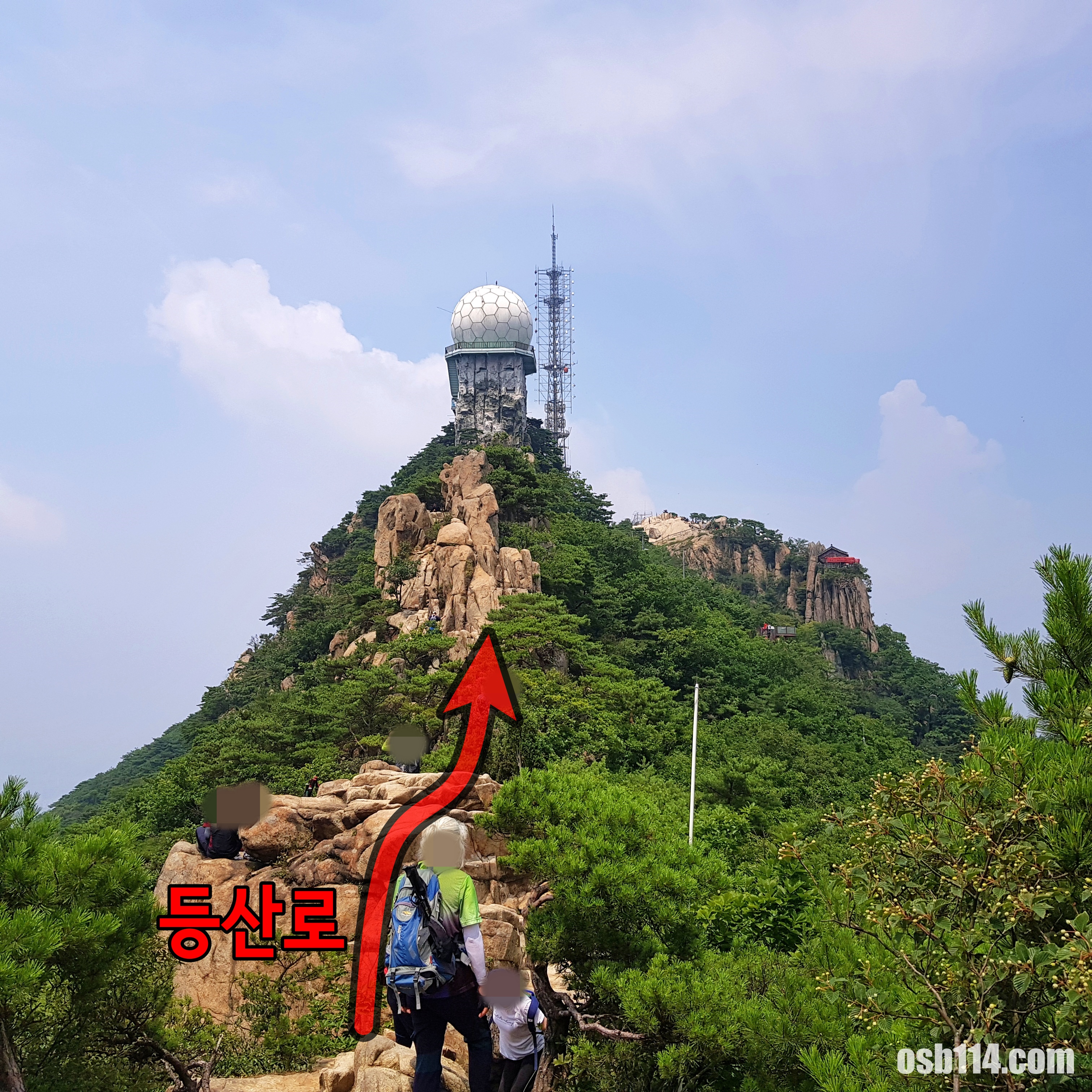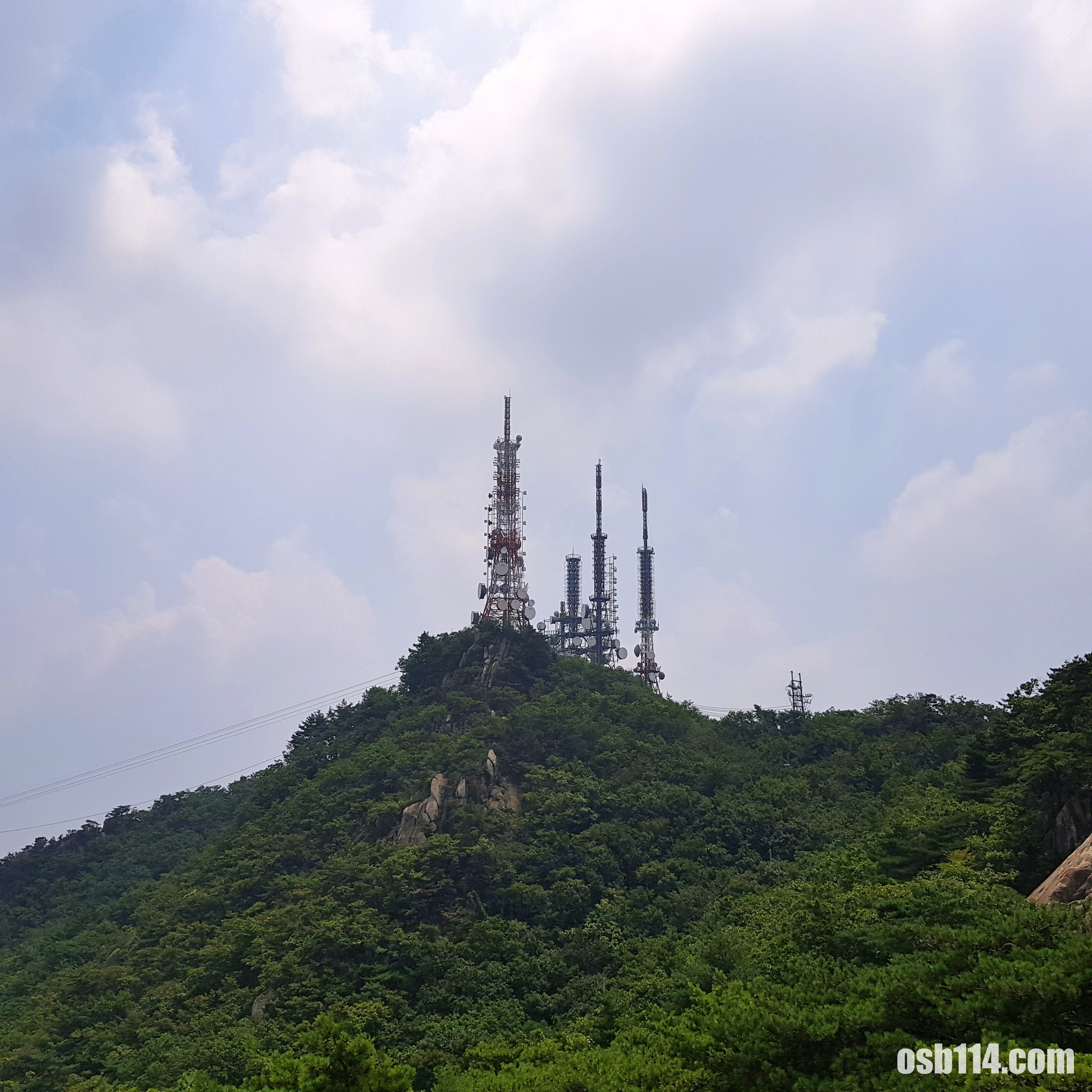 정상에 가까우니 방송탑과 산봉우리가 보입니다.