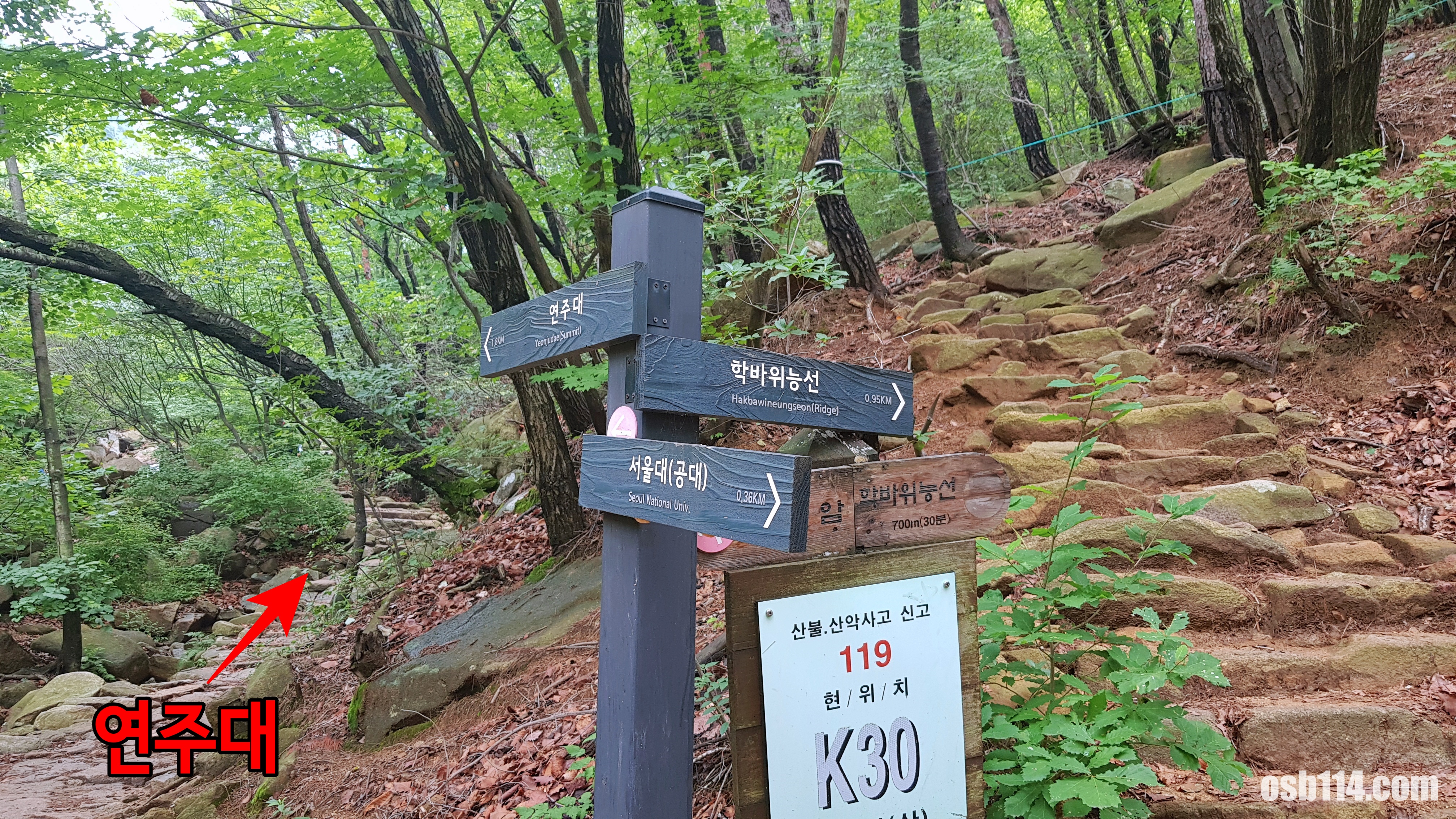 관악산은 갈래길이 많이 나 있습니다. 이정표를 잘 보고 가지 않으면 엉뚱한 길로 갈 수 있죠.