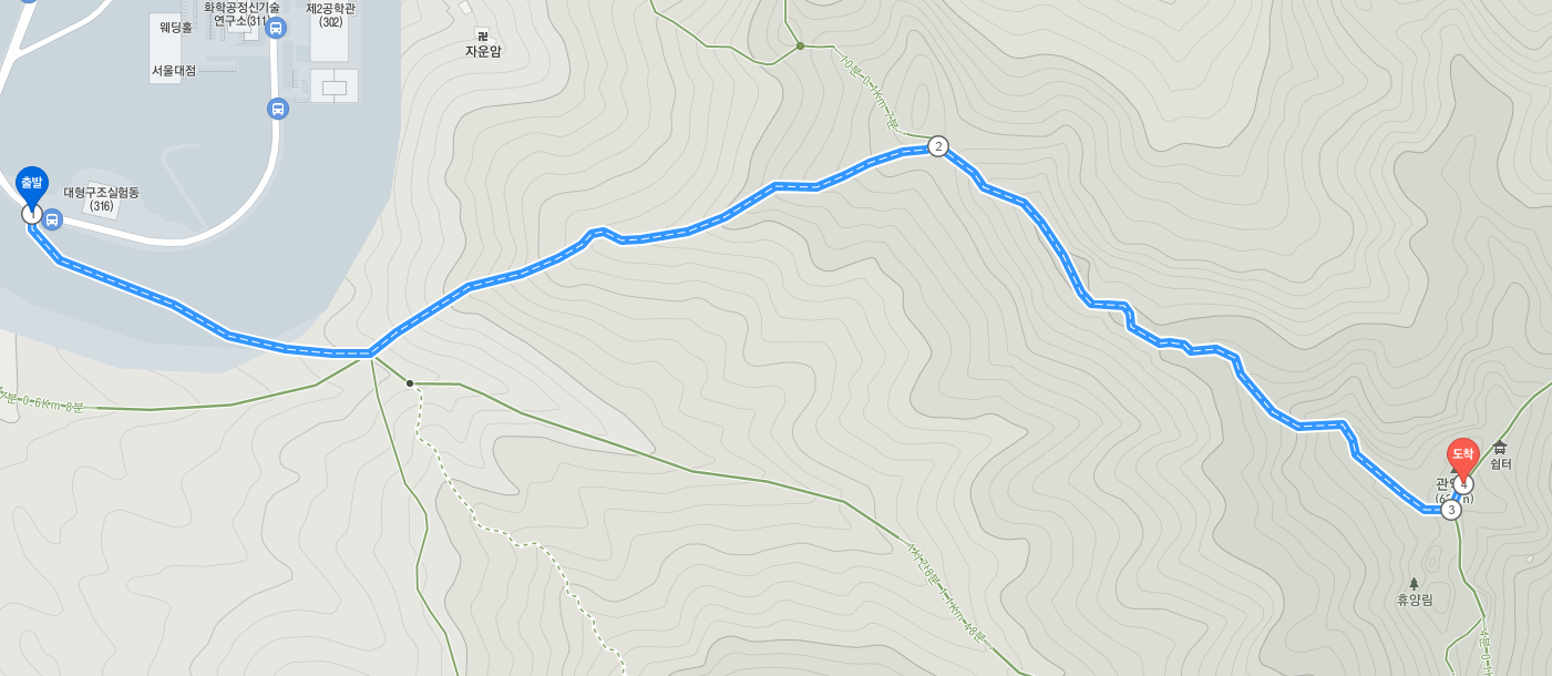 그중에서 서울대 신공학관에서 출발하는 길이 가장 짧고 빠른 길로 알려져 있습니다.