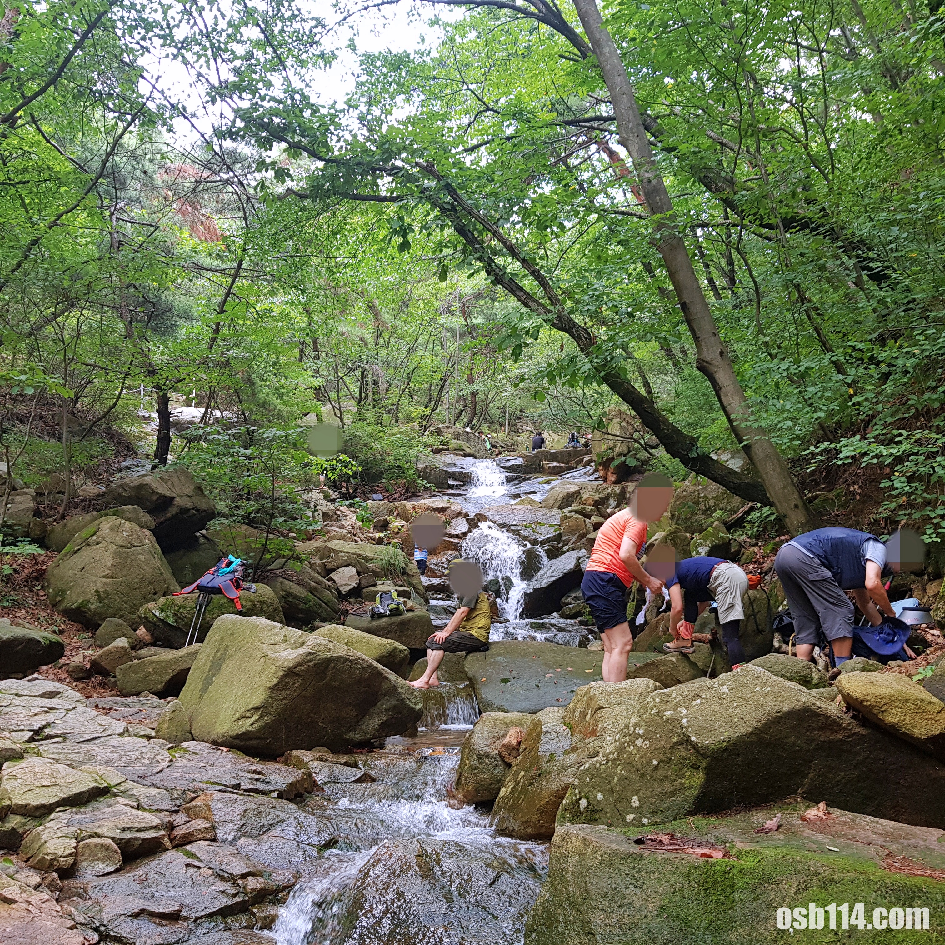 산행 중에 계곡에서 쉬거나 물놀이하는 사람들을 많이 볼 수 있었습니다.