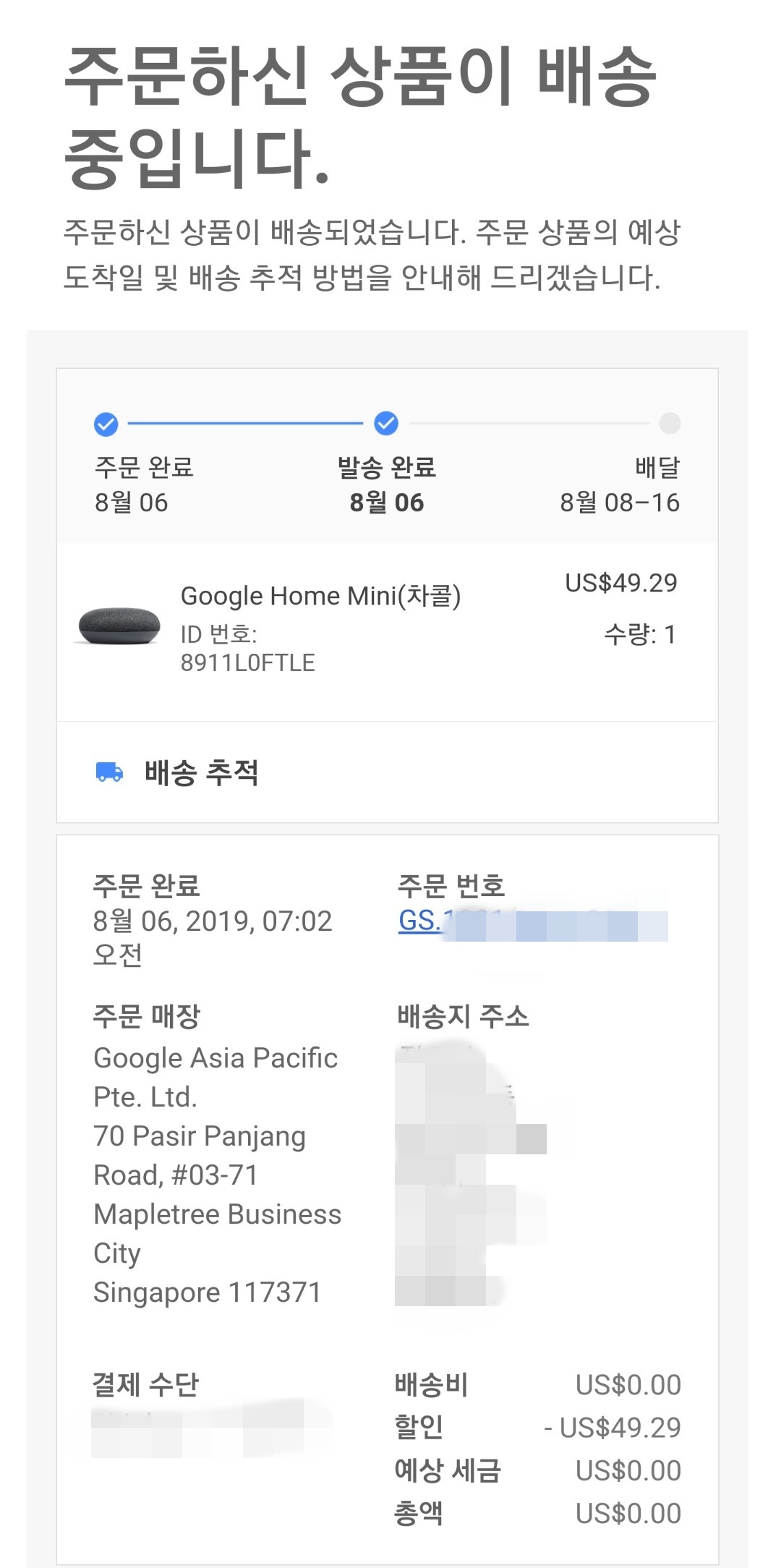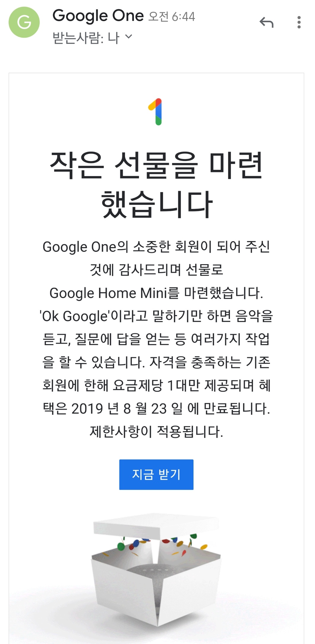 열어보니 구글 홈 미니(Google Hone Mini)를 무료로 준다는 내용이었습니다.