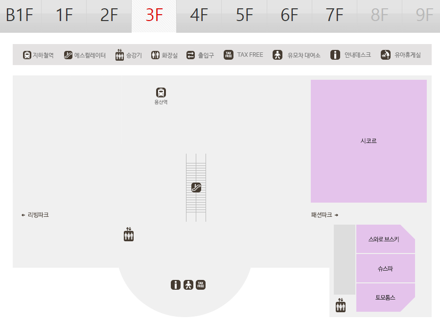 아이파크 몰은 용산역에 위치한 복합 쇼핑몰입니다.
