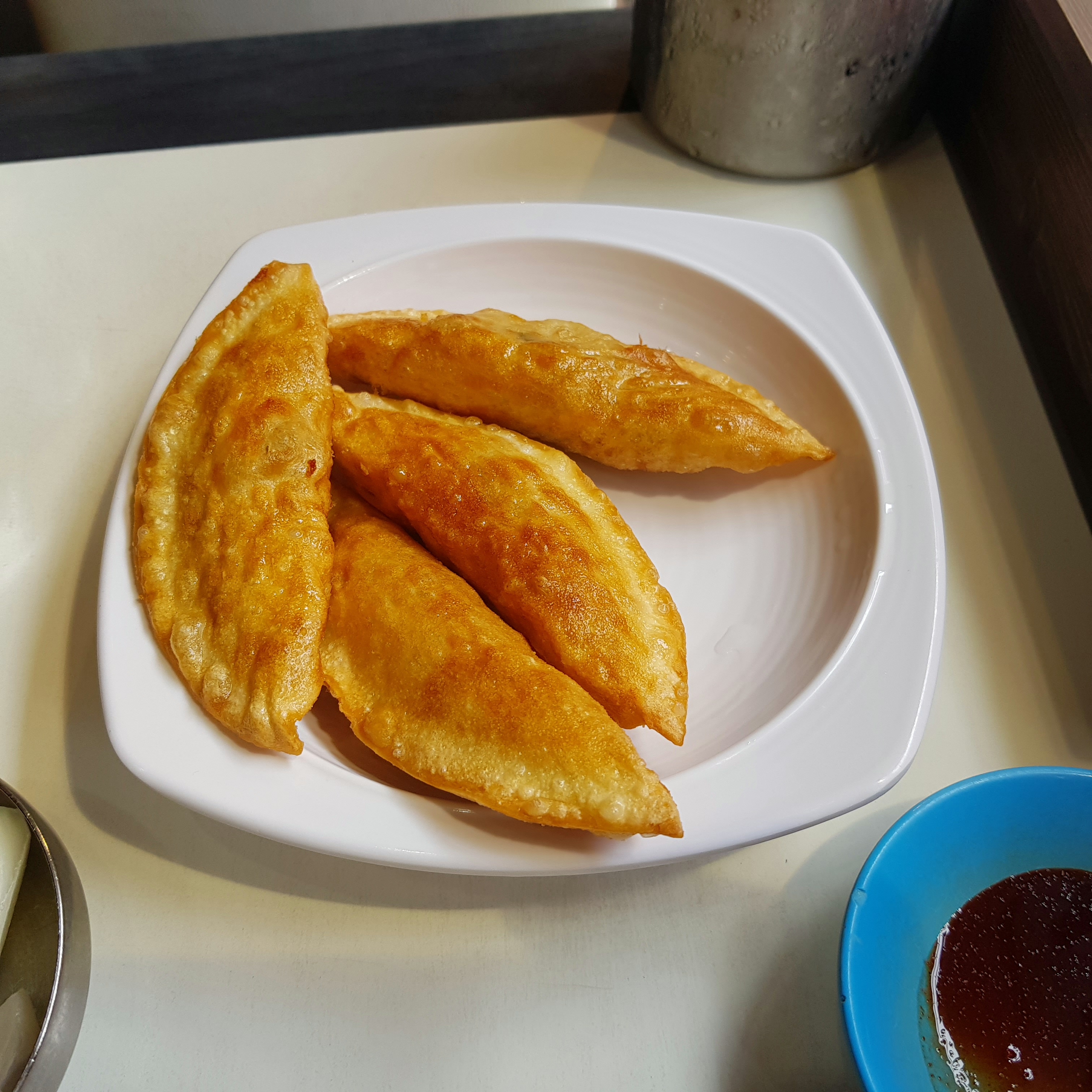 군만두 반 접시도 시켰습니다. 아침을 먹지 않았더니 배가 많이 고팠습니다.