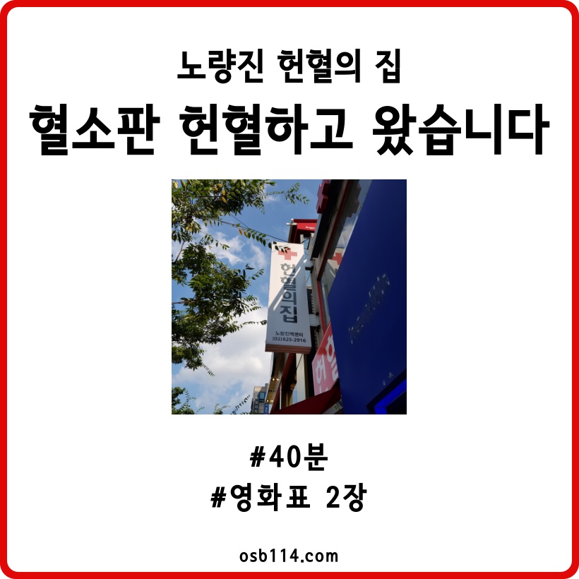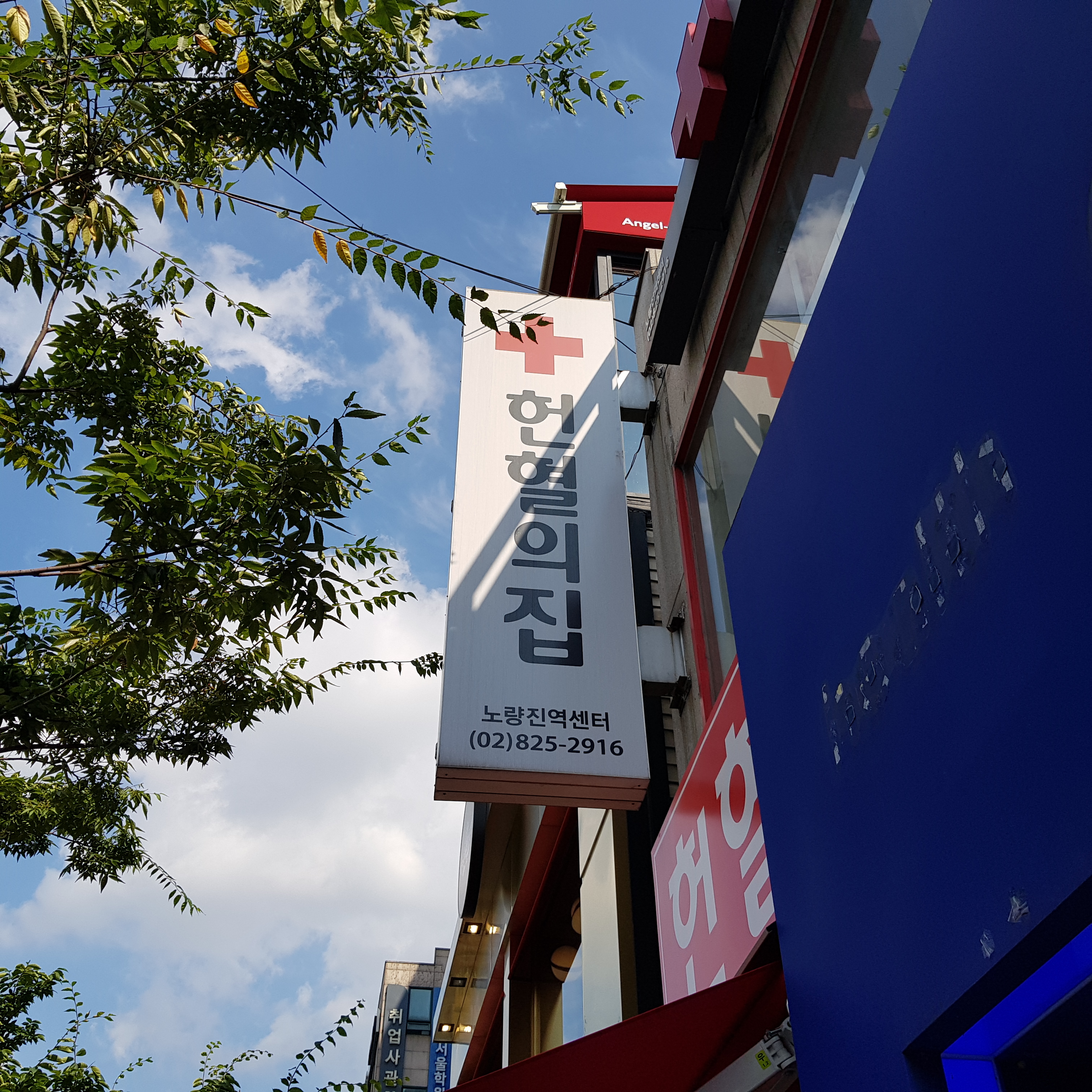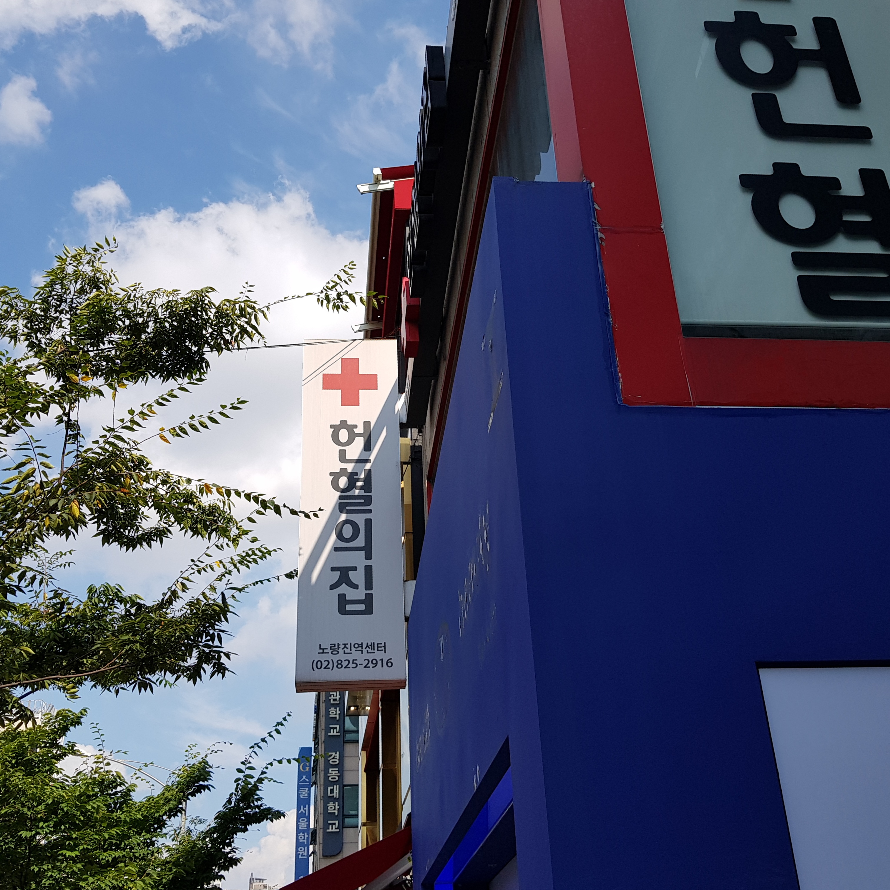 헌혈은 노량진에 위치한 헌혈의 집에서 했습니다.