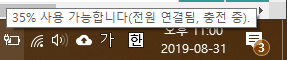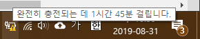 하지만 배터리에서 충전하는 전력보다 노트북이 소비하는 전력이 더 커서 온전히 충전하지는 못하고 있습니다. 사용 중에도 남은 배터리 용량이 계속 줄고 있습니다.