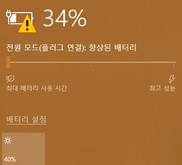 노트북 배터리 34% 기준으로 완충까지 1시간 45분이 걸린다는 메시지가 뜹니다. USB PD로 충전이 제대로 되고 있음을 확인할 수 있습니다.