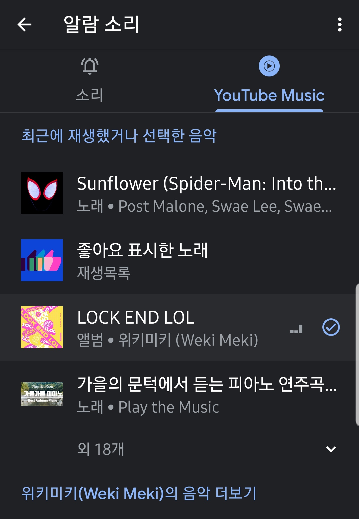 구글 시계의 알람음을 유튜브 뮤직에 있는 곡들로 설정할 수 있습니다.