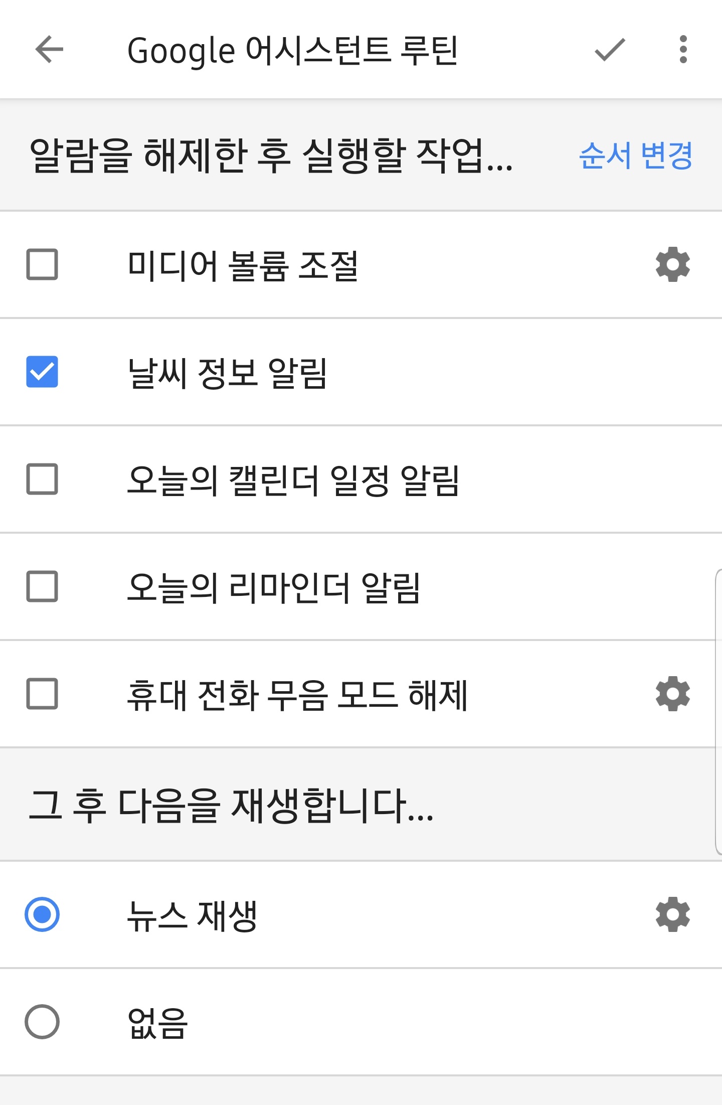 하지만 제가 원하는 건 야간이라고 명령을 했을 시 알람 시간을 자동으로 맞춰주고, 날씨와 뉴스 브리핑을 실행하는 것이었습니다.