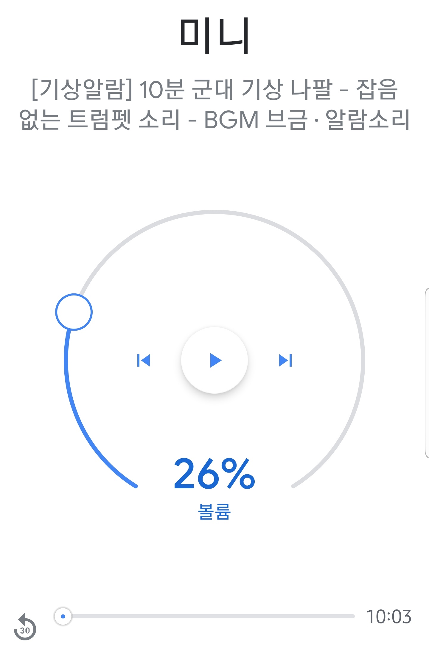 유튜브 뮤직에서 기상나팔 알람을 재생합니다...