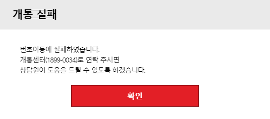 하지만 번호이동에 실패했다는 메시지가 뜨더군요.