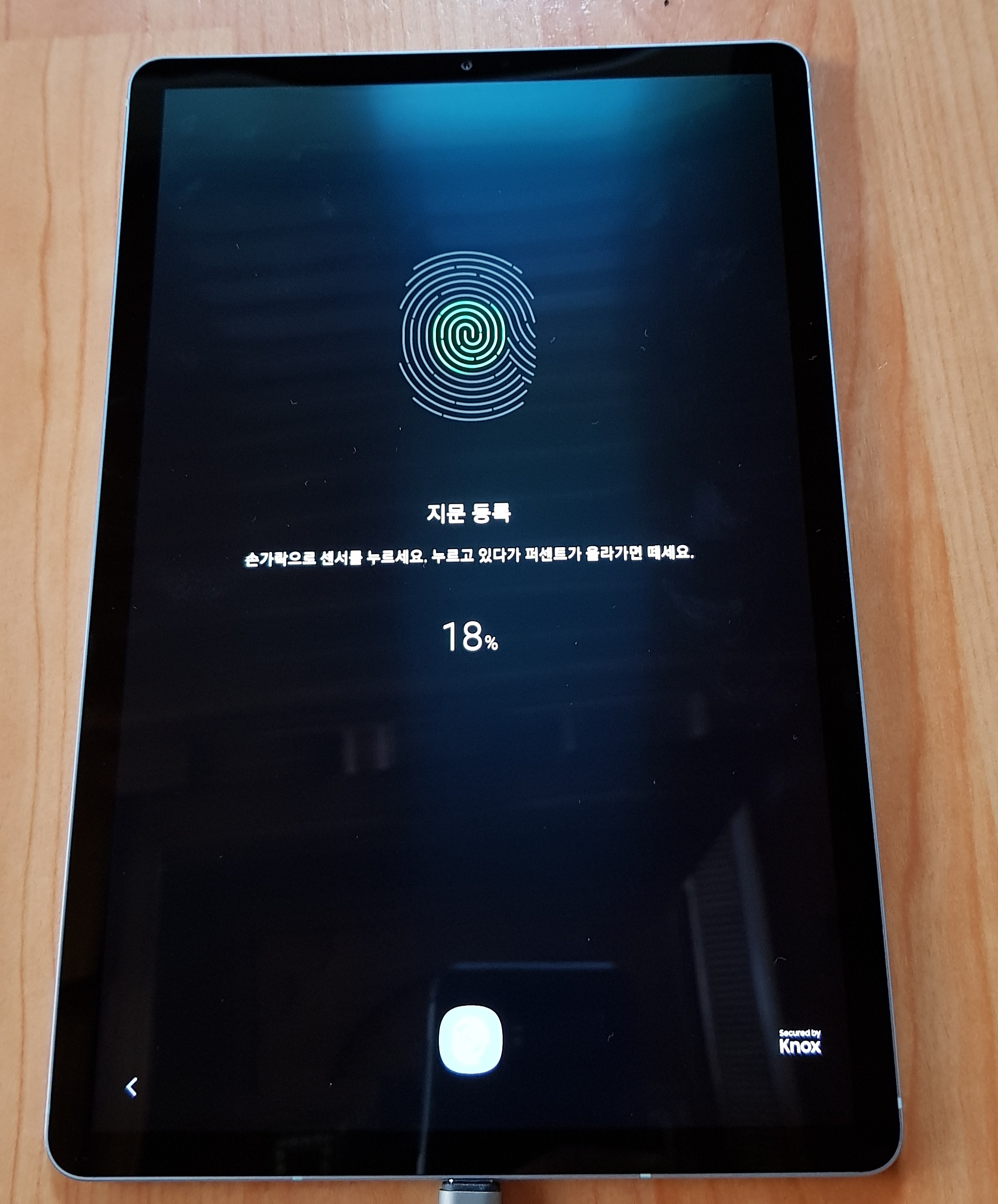 갤럭시 탭 S6는 화면 하단에 지문인식이 내장되어 있습니다. S10과 노트10과 같은 초음파 방식은 아니고, 적외선 방식입니다. 아까 지문인식으로 몇 번 사용해보았는데, 인식률은 조금 아쉬웠습니다.