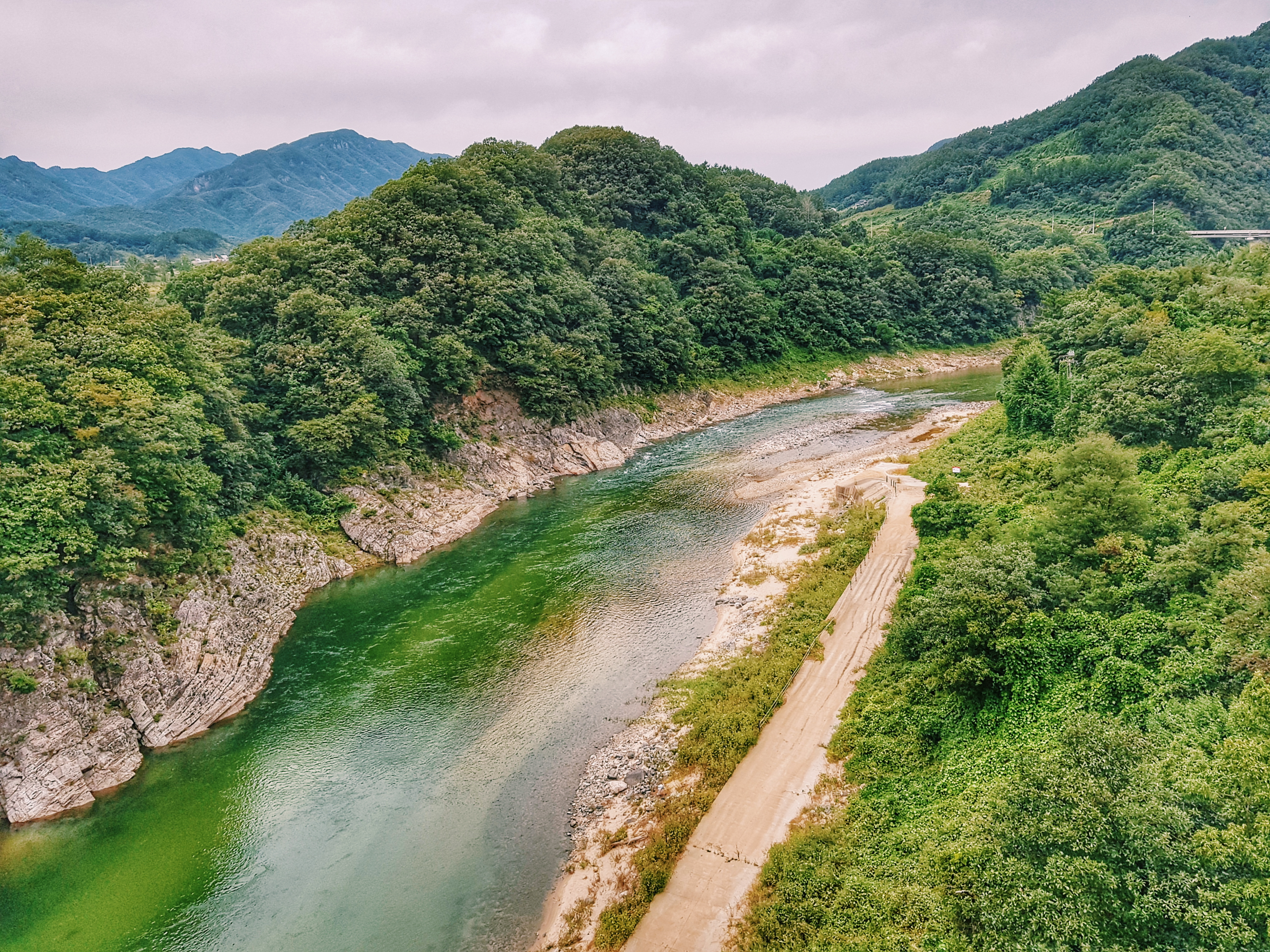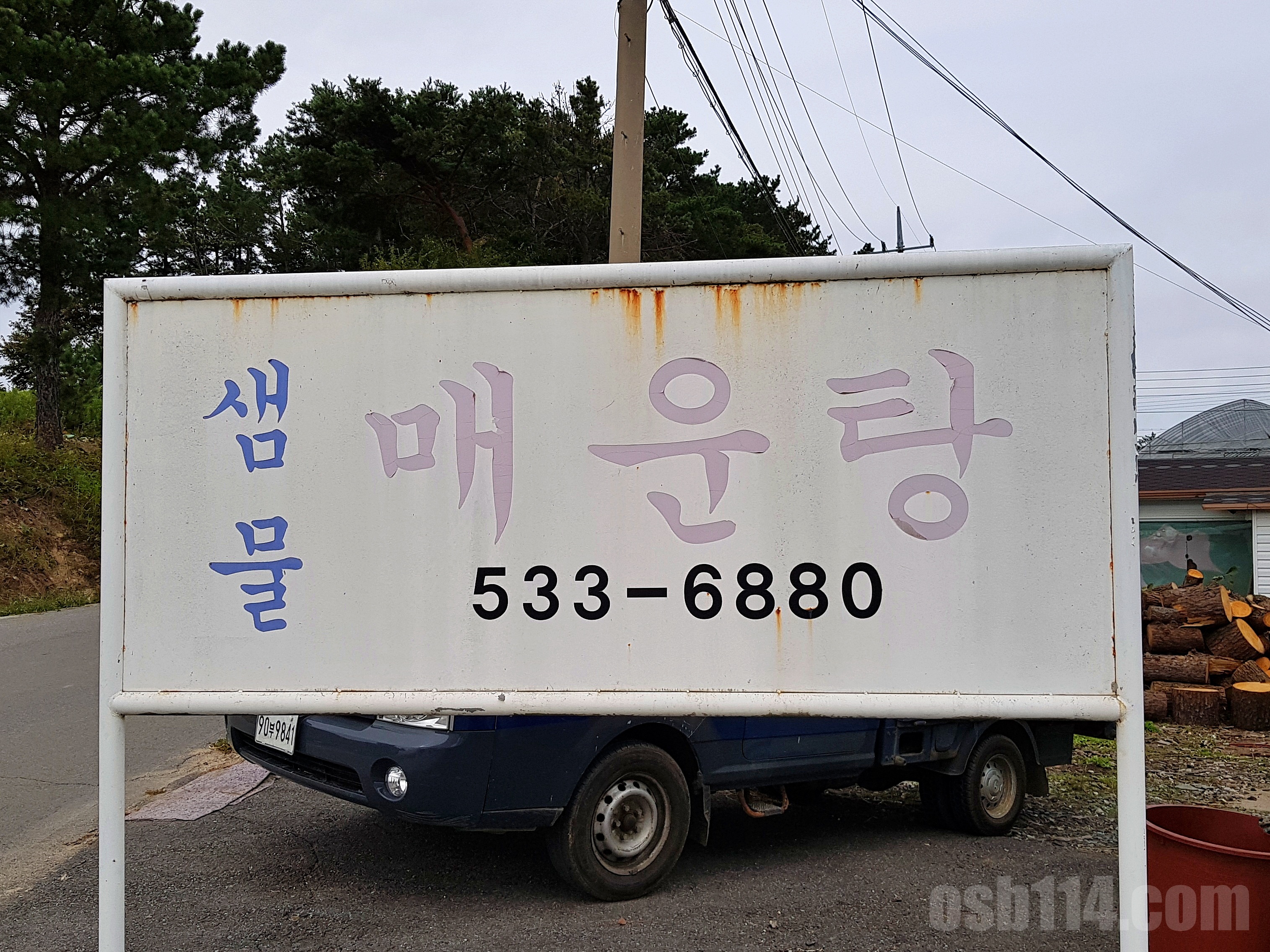 식사를 마치고 나왔는데, 날씨가 흐림에도 풍경이 나쁘지 않아 한 장 찍었다. 샘물 매운탕 식당은 꼭 강 근처가 아니라도 좋은 식당이 있다는 걸 알게 해 준 집이었다.