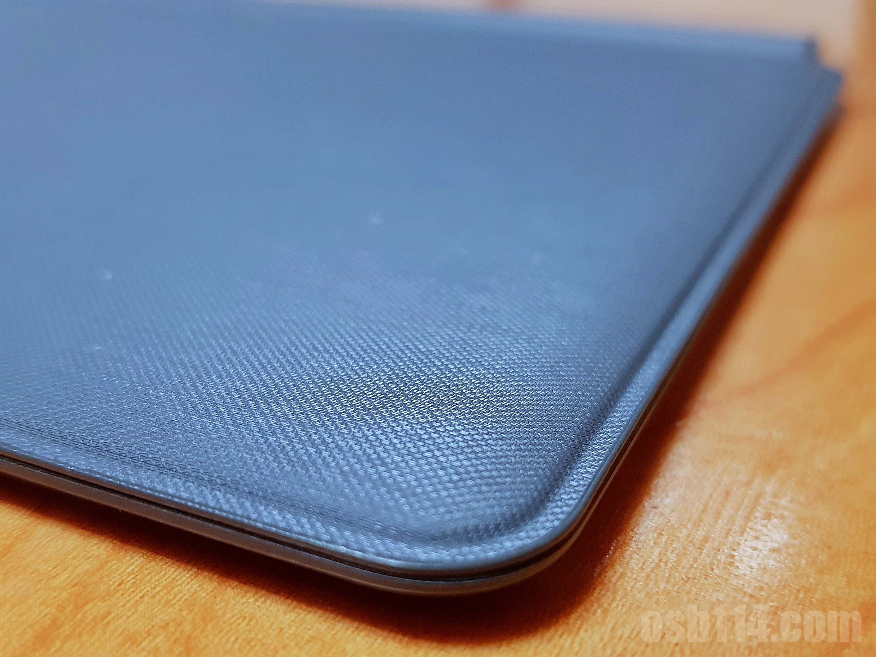 키보드 커버 4 귀퉁이에는 튀어나온 부분이 있는데, 이거 때문에 케이스를 덮어도 키가 화면에 닿지 않는다. 마찬가지 이유로 키보드 케이스를 뒤집었을 때 바닥에 키가 닿지 않는다.