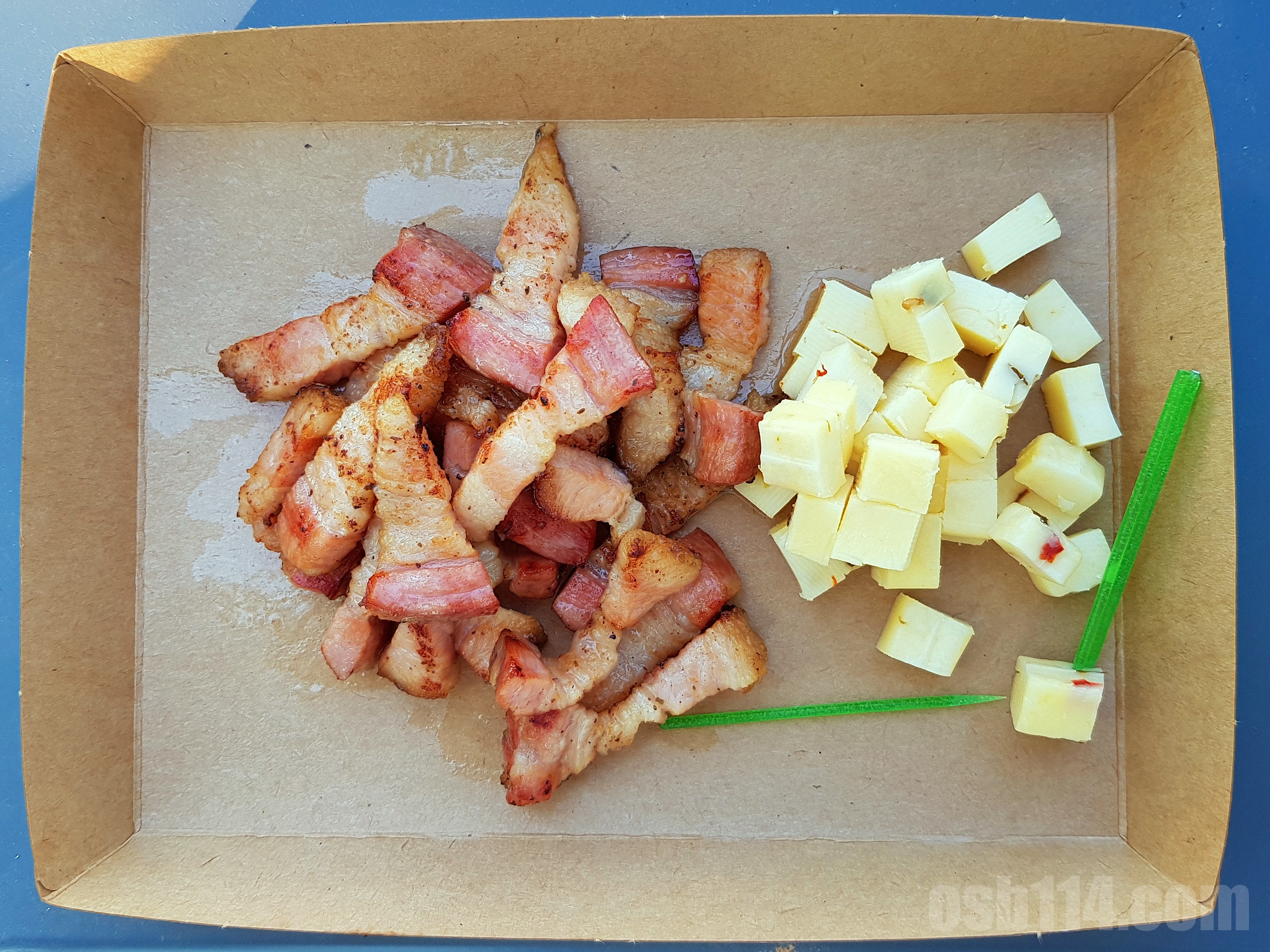 베이컨은 짜지 않고 담백했다. 치즈는 약간 매콤했다. 술 생각이 나는 맛이었다.