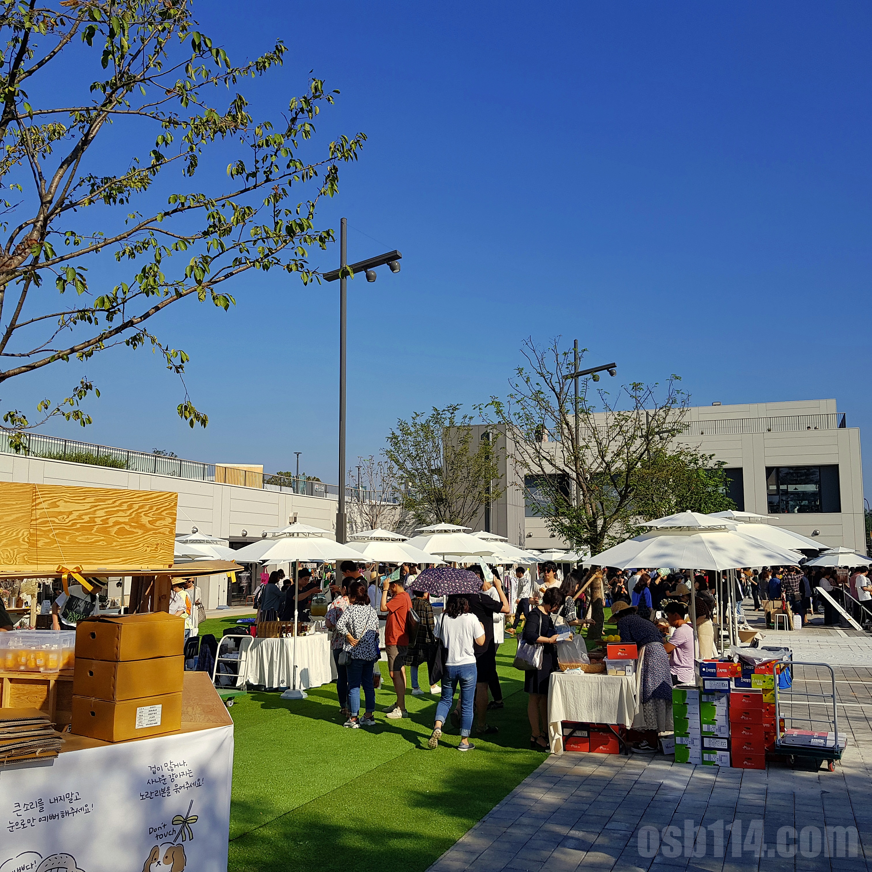 밖에 나가니 잔디마당에 플리마켓들이 원형을 이루고 있었다. 사진 한 장에 담을 수 없을 정도로 많은 플리마켓들이 제품을 판매하고 있었다.