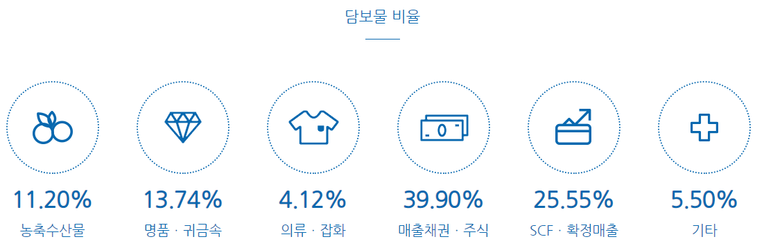 쌀, 견과류 같은 농축 수산물부터 귀금속, 의류, 채권, 주식까지 다양한 담보 상품을 내놓고 있다.
