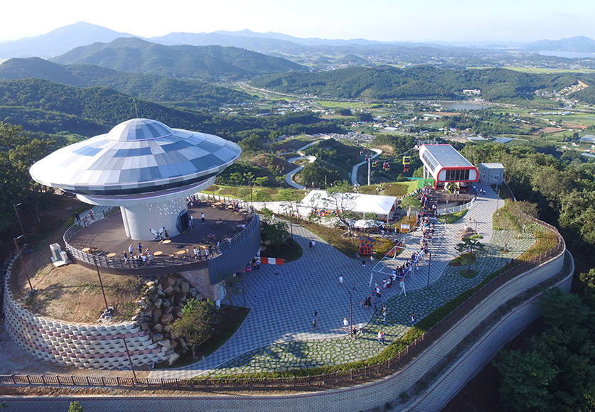 곤돌라를 타고 리조트 최정상에서 만날 수 있는 회전 전망대는 비행접시 우주선을 연상케하는 독특한 디자인이 특징이며, 3면의 바다를 빠짐없이 조망할 수 있도록 1시간에 1바퀴씩 회전하도록 설계되었습니다.
