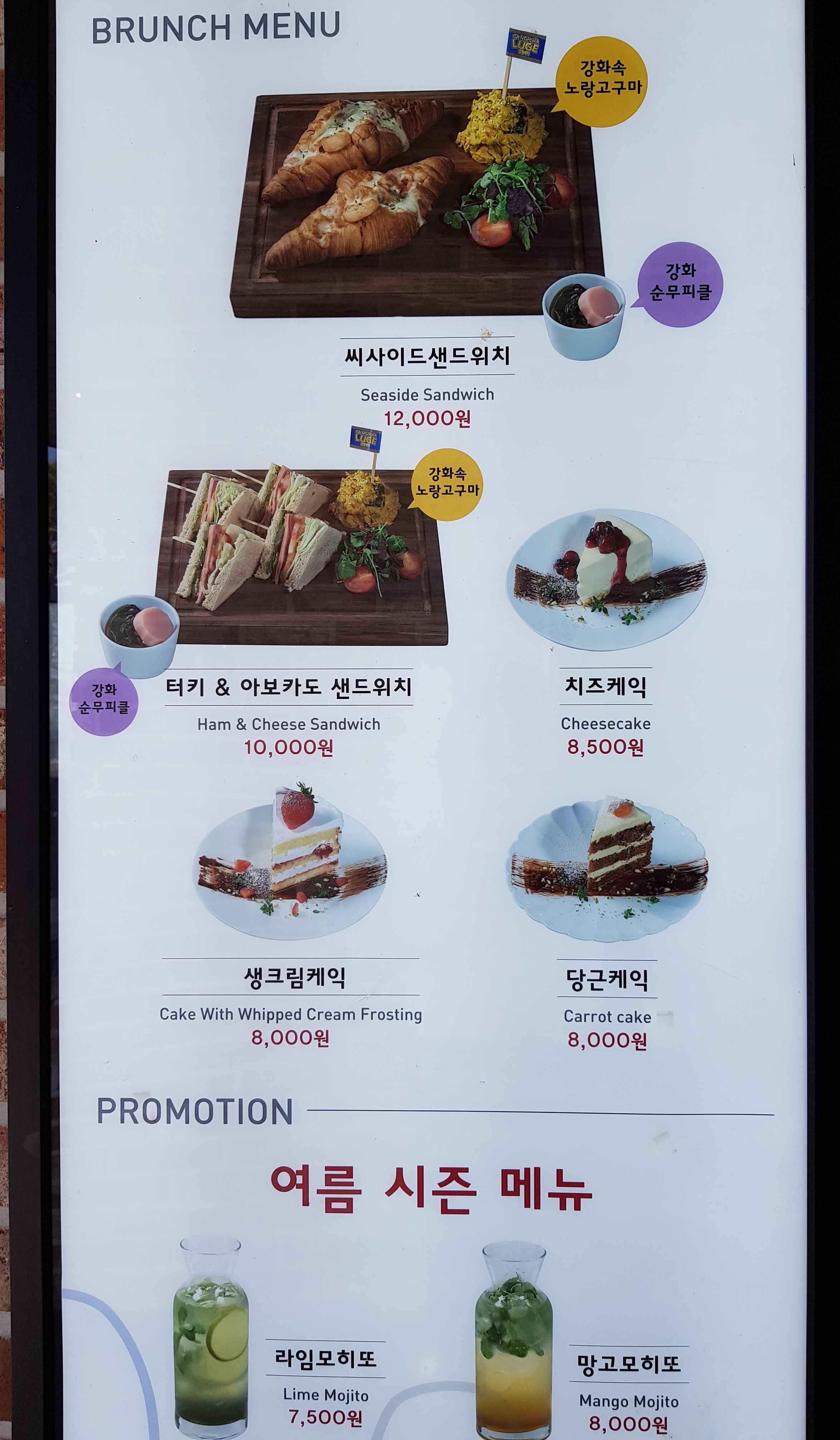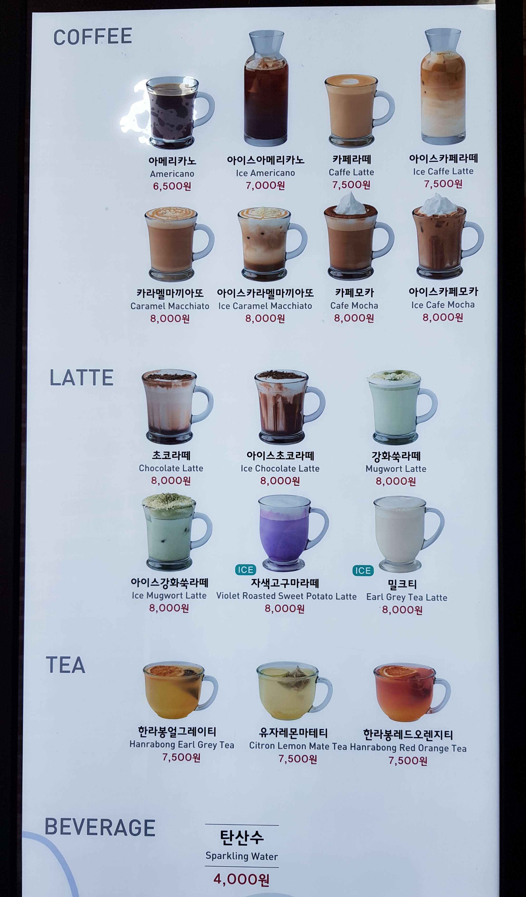 가장 저렴한 아메리카노가 6,500원이었고, 평균 음료 가격은 7~8천 원 대를 유지하고 있었다. 관광지라 어쩔 수 없는 거라 이해는 하지만, 그래도 너무 비쌌다.