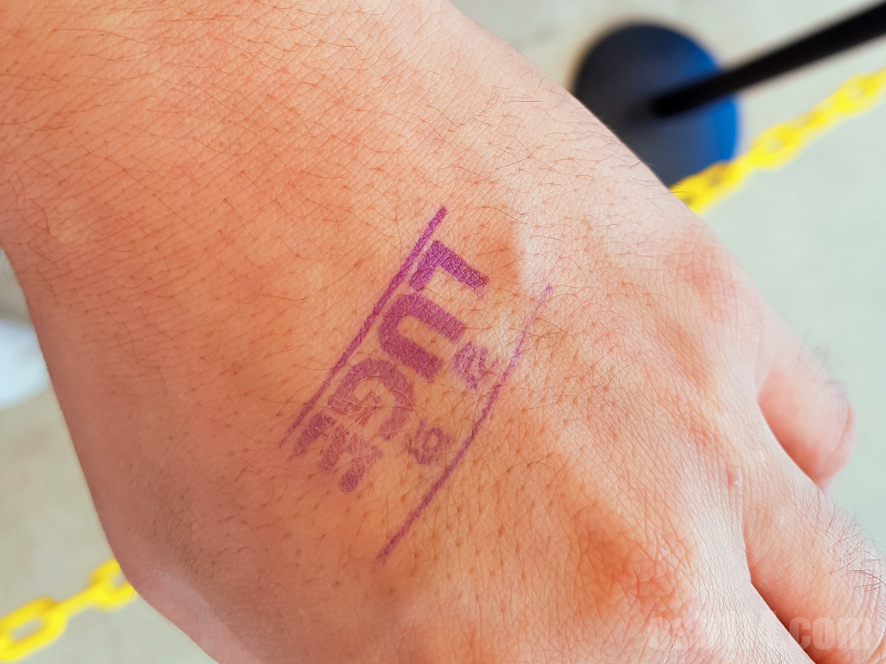 출발하기 전 손등에 스탬프를 찍어 주었다.