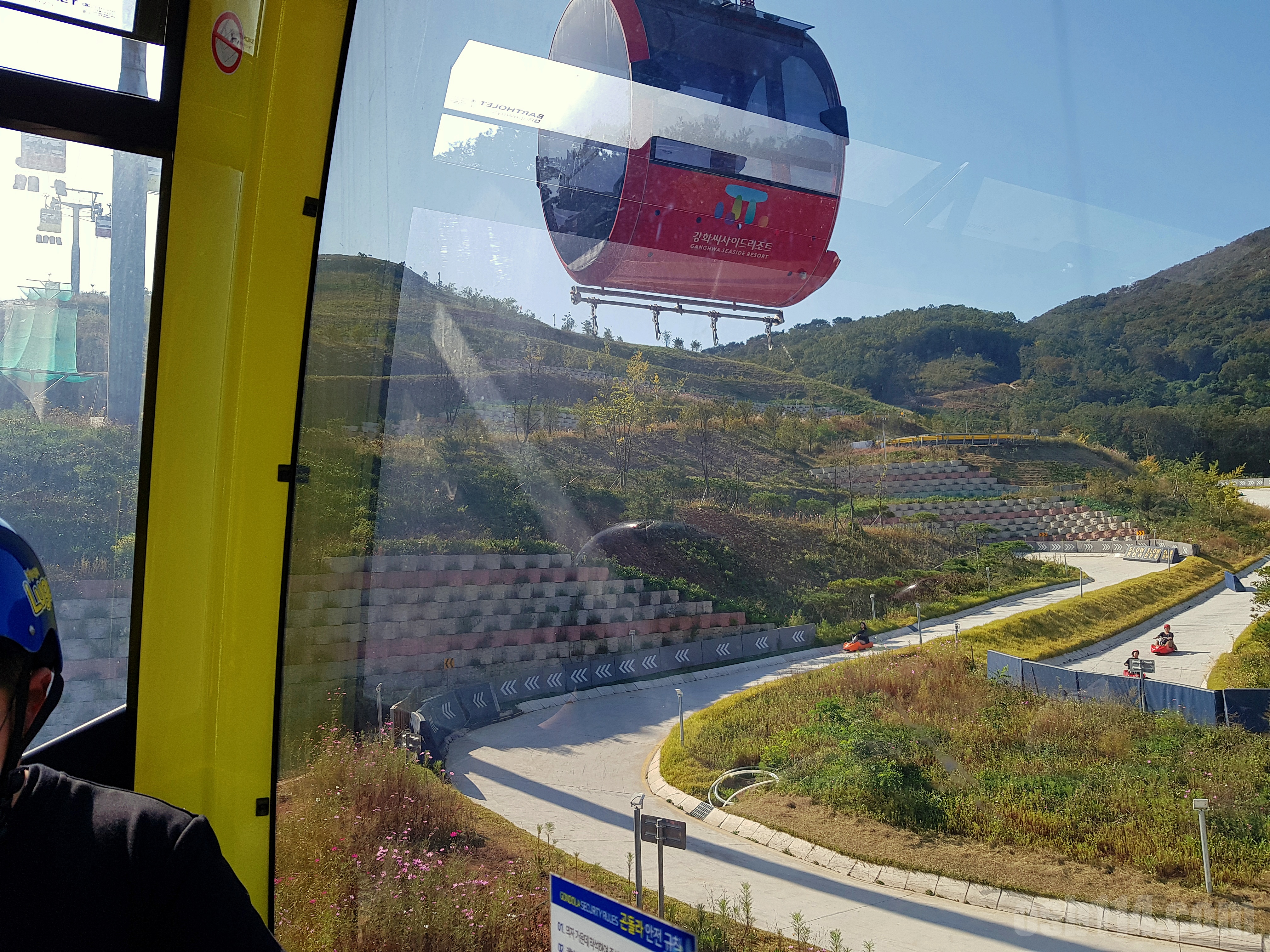 곤돌라 밑에서 루지를 타는 사람들을 볼 수 있었다. 트랙을 따라 내려가는 시원하게 내려가는 사람들을 보니 얼른 루지를 타고 싶어 졌다.