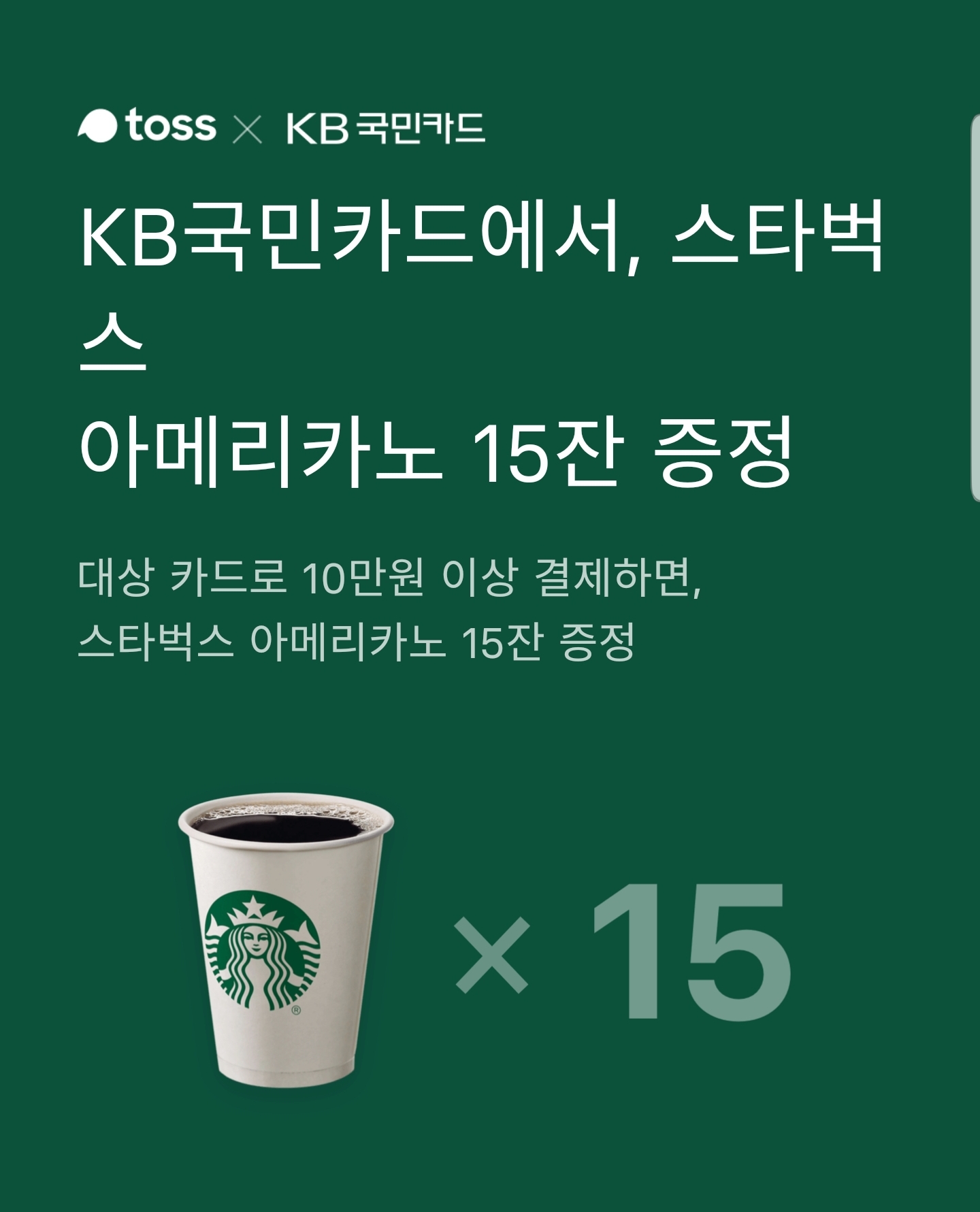 스타벅스 아메리카노 15장 (6만 9천원 상당) |