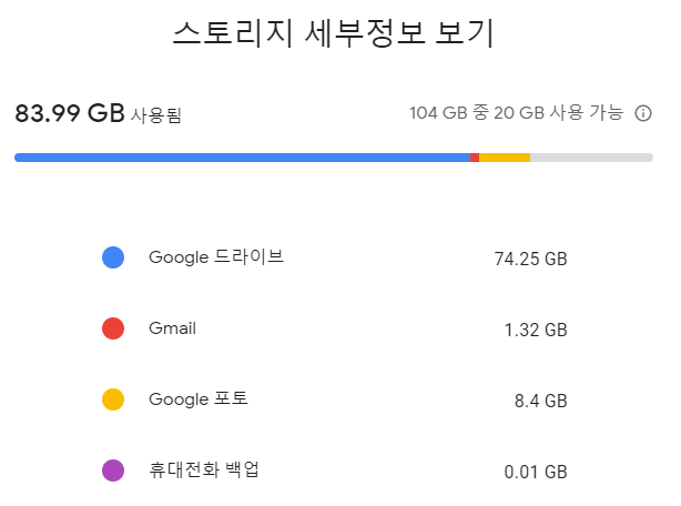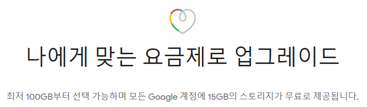 그래서 구글의 서비스를 적극적으로 사용하는 경우, 기본 제공 용량인 15G는 부족할 수 있습니다.