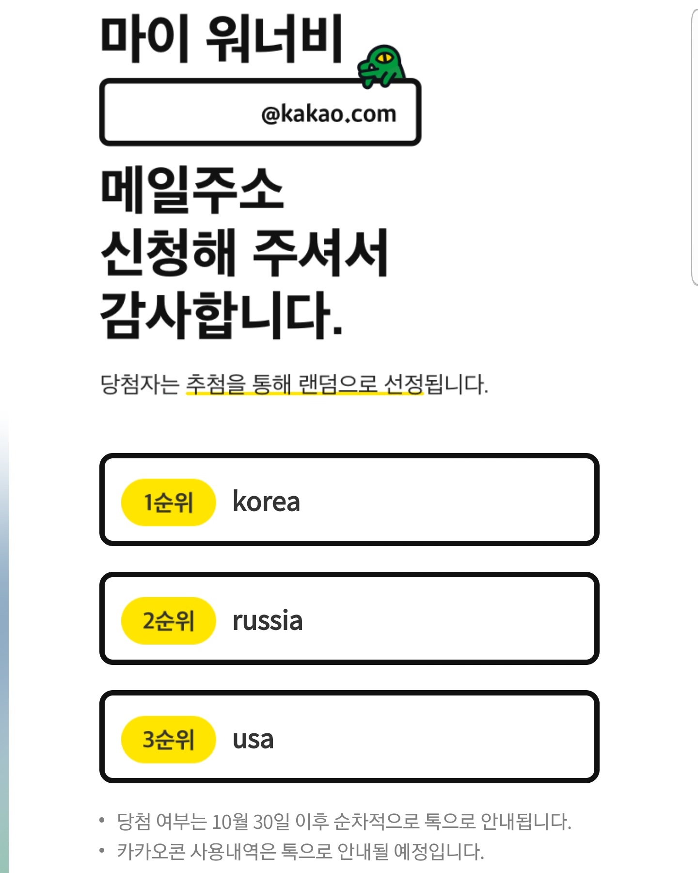11월부터 시작하는 카카오 메일에 대한 아이디를 사전에 선점할 수 있는 서비스인데, 아이디를 1,2,3순위로 설정할 수 있습니다.