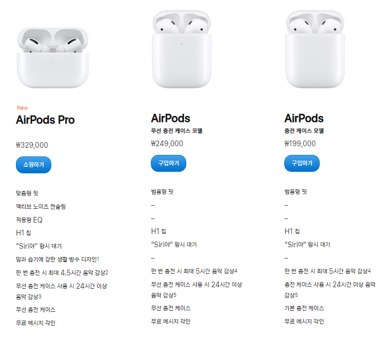 애플 사이트: https://www.apple.com/kr/shop/select-airpods