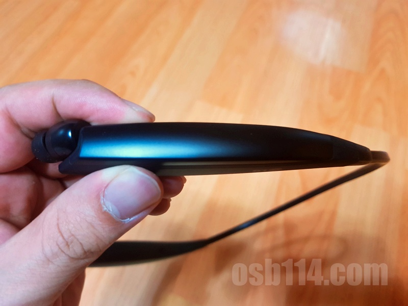 넥밴드 부위는 고무로 되어 있어 구부려도 손상이 있거나 하진 않습니다. 꽤 유연합니다.