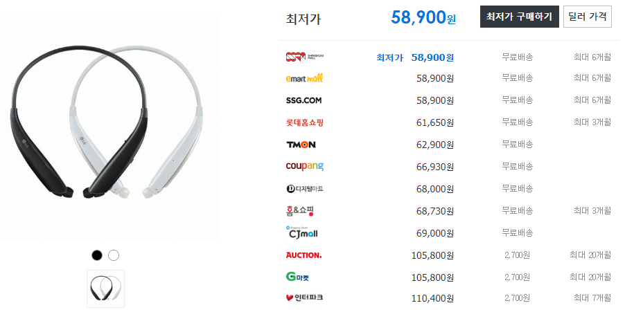 가격 대비 성능 괜찮은 걸 찾다가 LG 톤 플러스 제품이 괜찮은 것 같아서 톤플러스 위주로 검색했습니다.