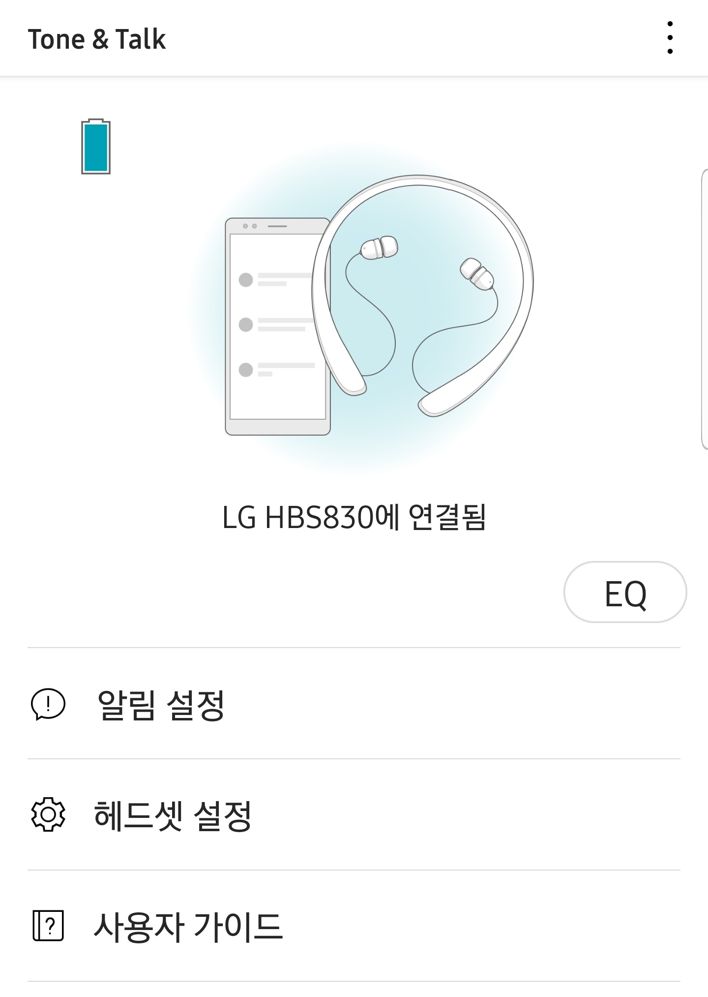 톤플러스는 LG Tone & Talk 어플을 통해서 간단한 설정이 가능합니다.