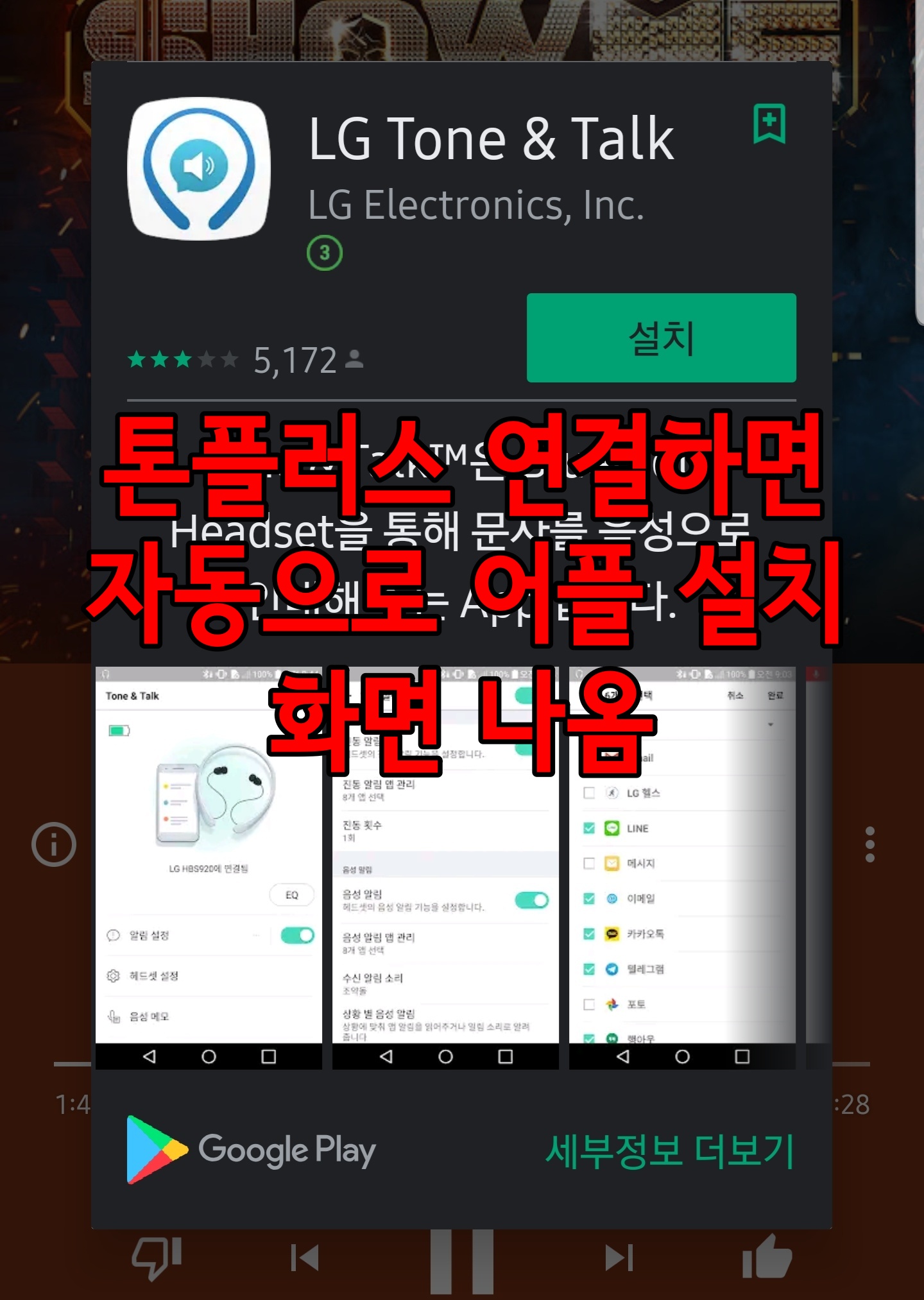그래서 LG의 Tone & Talk 어플을 설치했습니다.