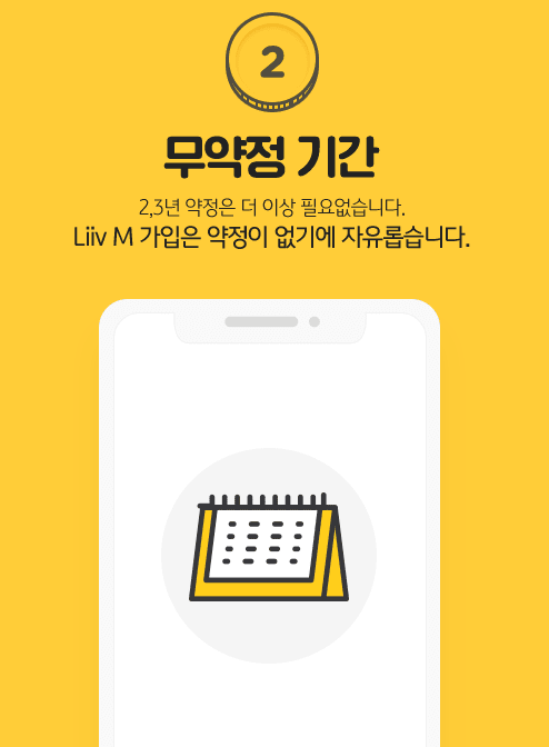리브모바일은 약정이 없습니다. 나중에 약정 서비스가 생길 수도 있지만, 일단은 무약정 서비스를 기본으로 하고 있습니다.