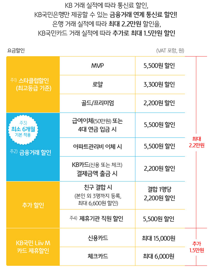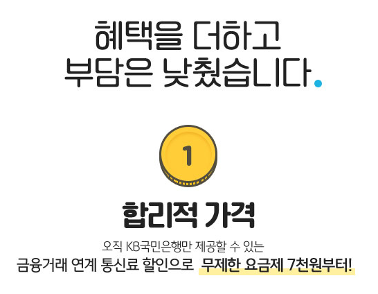 알뜰폰 요금제는 KB국민은행과 연계해서 특정 조건을 만족하면 할인을 제공하는 형식이죠.
