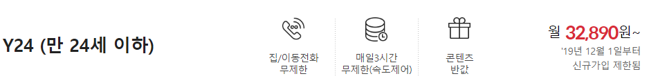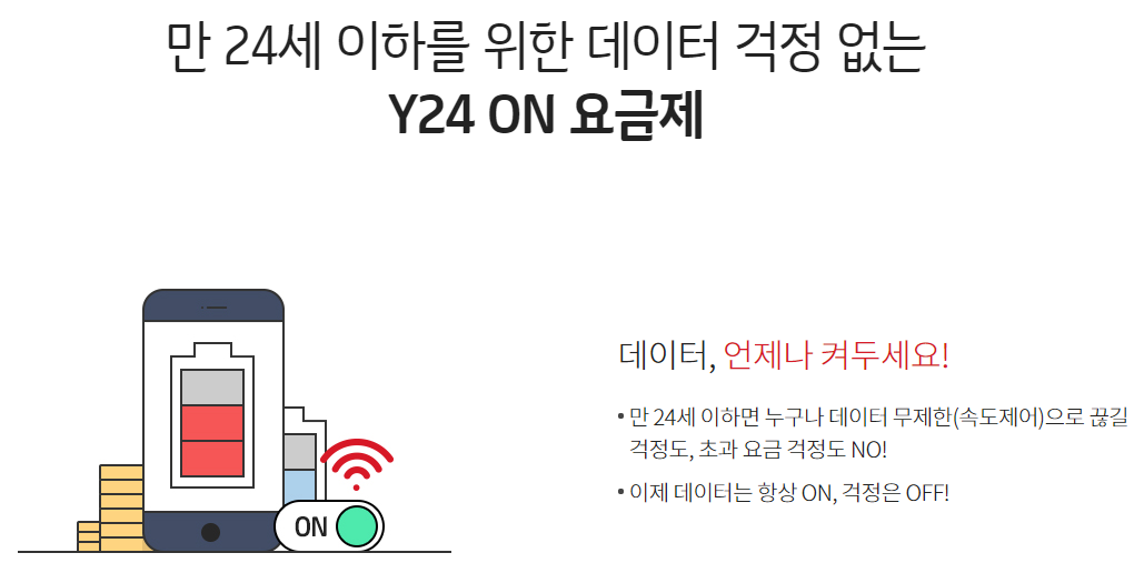 Y24 ON 요금제는 만 24세 미만 이용자만 가입할 수 있는 요금제입니다.