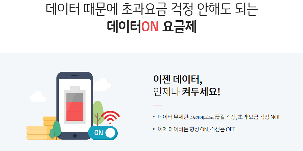 요금제 구성은 데이터 ON 요금제와 거의 비슷합니다.