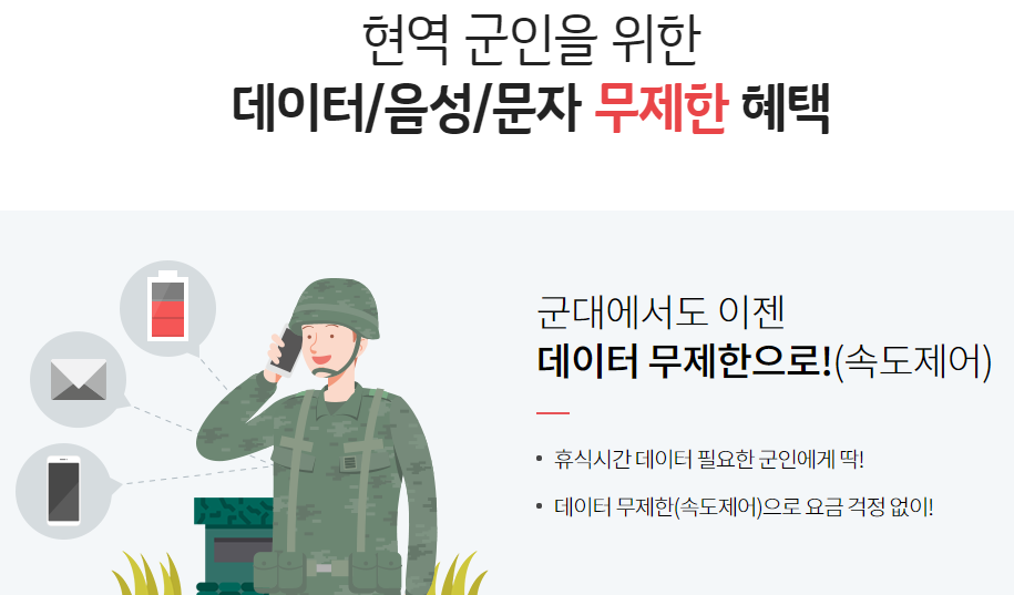 군인들이 부대 내에서도 스마트폰을 쓸 수 있게 됨으로써 고객층을 확보하기 위해 저렴하고 좋은 요금제를 내놓지 않았나 생각합니다. 괜찮은 군인 요금제로 추천할 만 합니다.