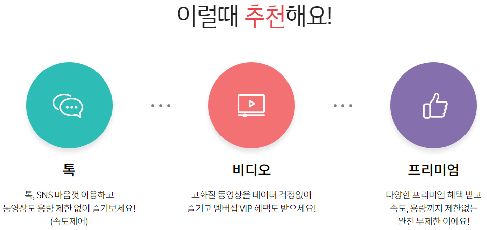 | 비디오 | 69,000원 | 100GB+무제한 (5Mbps 속도제어) |