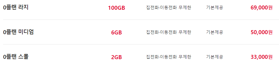 SKT 0플랜 요금제 중에선 0플랜 라지 요금제가 괜찮아 보입니다.