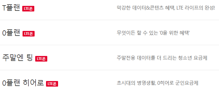 SKT LTE 요금제 중에서 추천해드릴 만한 건 T플랜, 0 플랜, 주말엔 팅, 0플랜 히어로가 있습니다.