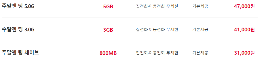 주말엔 팅은 학생들을 위한 요금제인 만큼, 데이터 양은 적습니다.