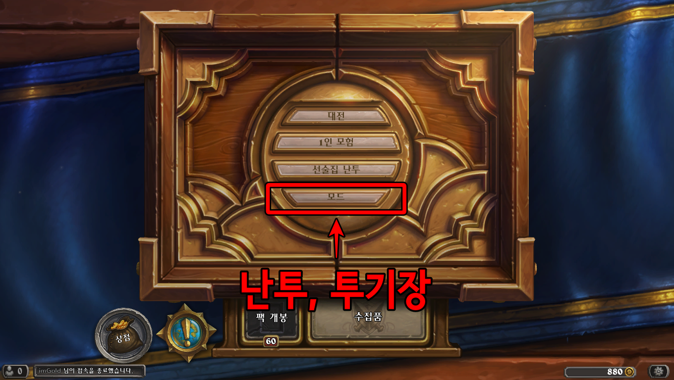 하스스톤에 접속하면 투기장이 없어지고 모드가 생겼습니다.