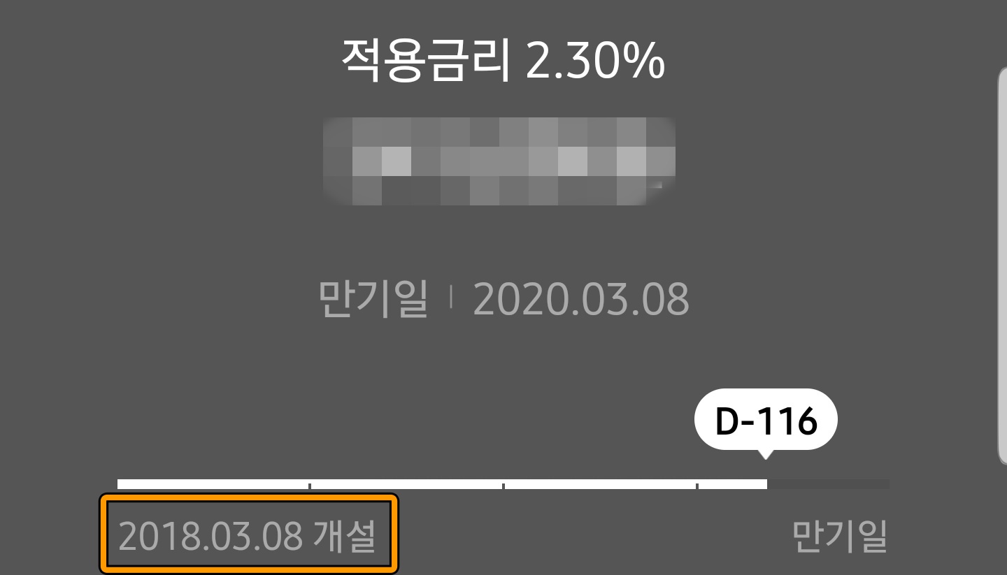 제가 2018년 03월 08일에 개설했던 카카오뱅크 2년 만기 적금은 적용금리가 2.3%입니다. 카카오뱅크의 금리가 1년 반 만에 0.5%나 떨어졌습니다.