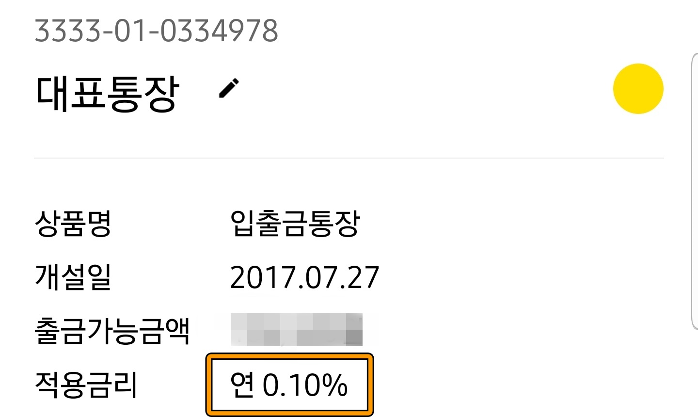 원래 입출금 통장의 적용 금리는 매우 낮은 편입니다. 처음 금리 그대로 유지하고 있습니다.