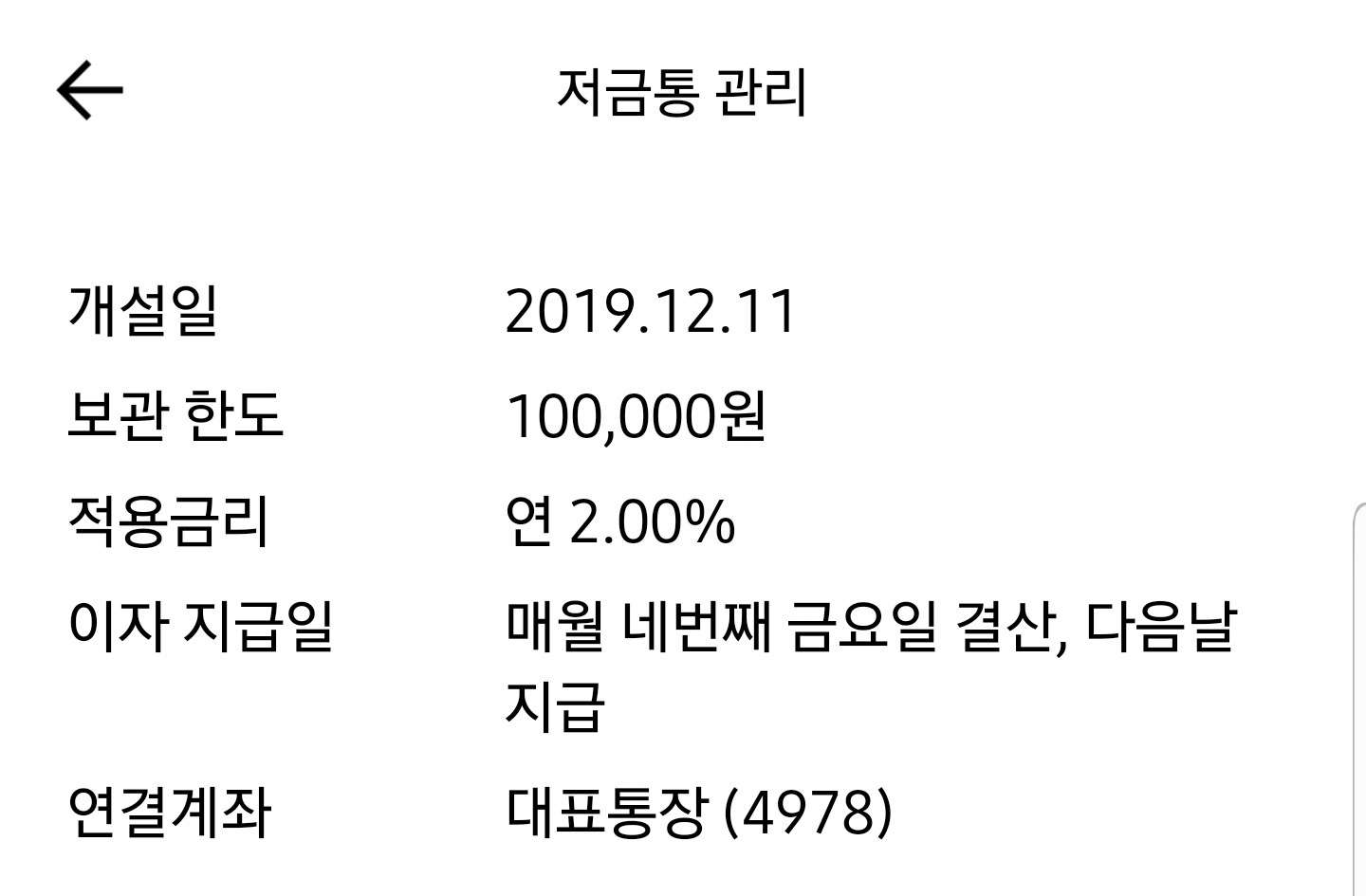저금통에 쌓인 금액은 한 달에 한 번, 그리고 매월 5일에 엿보기 기능으로 확인할 수 있습니다.