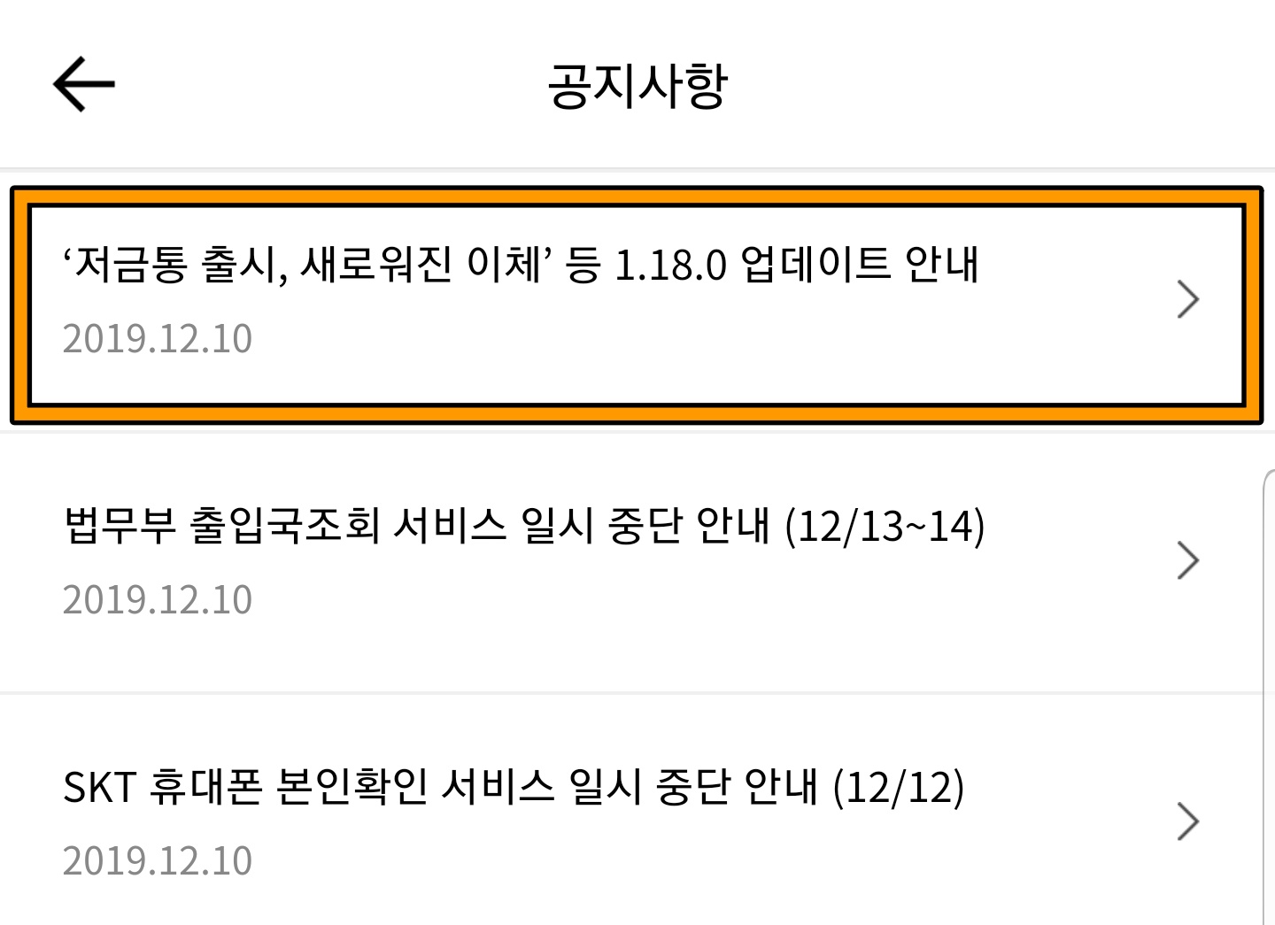 2019년 12월 10일 카카오뱅크 어플이 1.18.0으로 업데이트되었습니다.