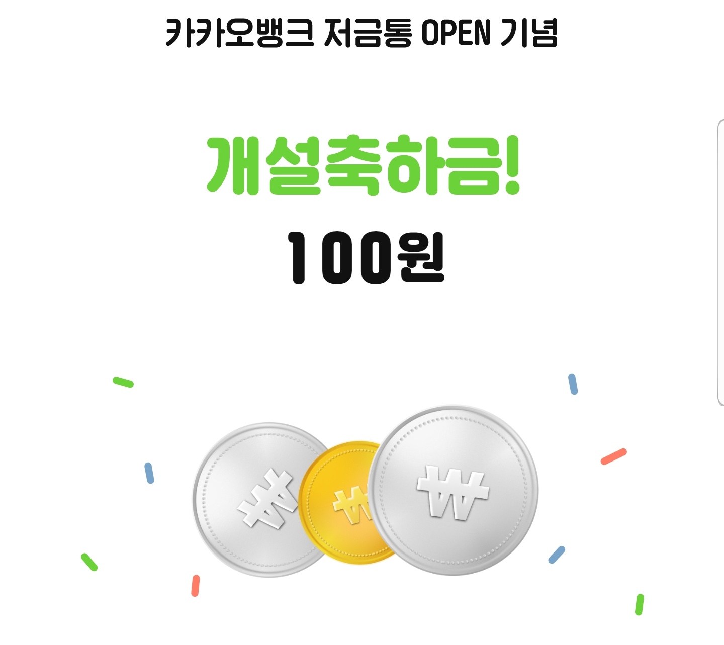 현재 카카오 뱅크에선 저금통을 만들면 축하금을 지급하는 이벤트를 진행 중입니다. 저는 100원을 받았습니다. 이 이벤트는 12/10~12/23일까지 진행합니다.