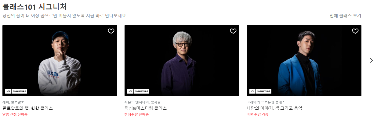 그러다 최근에 클래스 101이라는 곳을 알게 되었는데, 괜찮은 강의들이 많더군요.