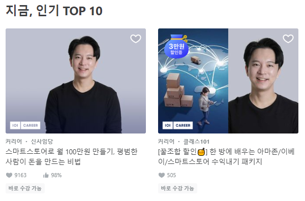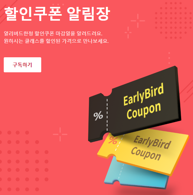 클래스 101에서는 할인행사도 많이 하고 있습니다. 주로 유명인들의 강의를 할인하고 있고, 2개의 강의를 패키지로 묶어서 판매하기도 합니다. 관심있는 분야가 있다면 할인행사 또는 쿠폰을 통해 저렴하게 강의를 듣는 것 또한 가능합니다. 쿠폰은 많이 뿌리는 것 같더군요.